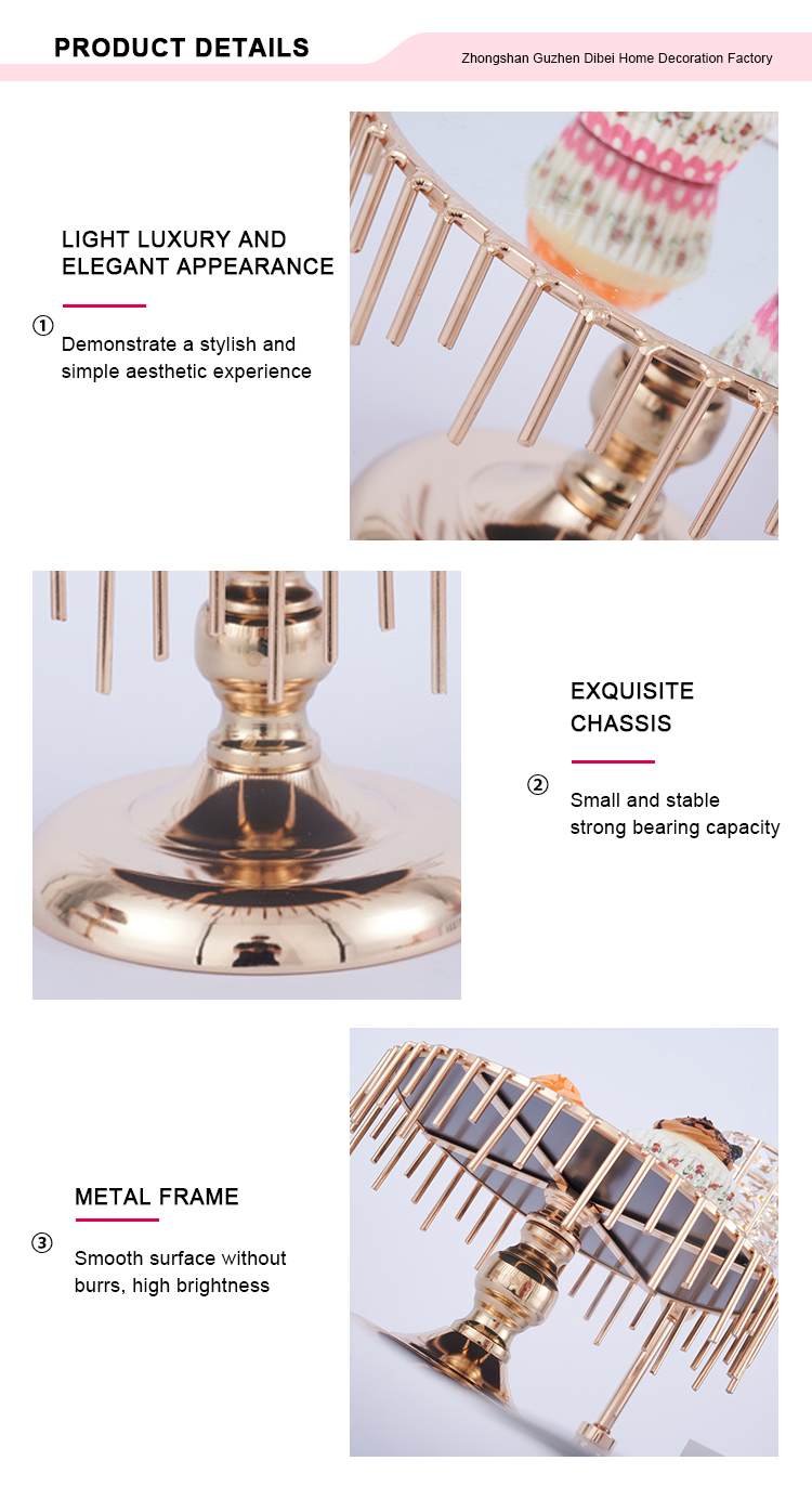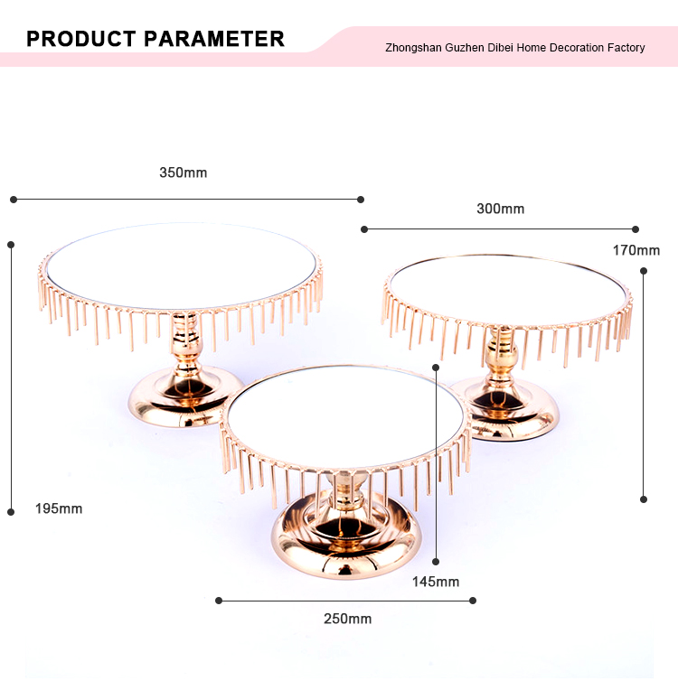 | Holiday: | Valentine's Day, Mother's Day, Newborn Baby, Father's Day, Eid al-Fitr, Chinese New Year, Christmas, New Year's Day, Easter, Thanksgiving, Halloween | product name: | Golden mirror cake display stand |
