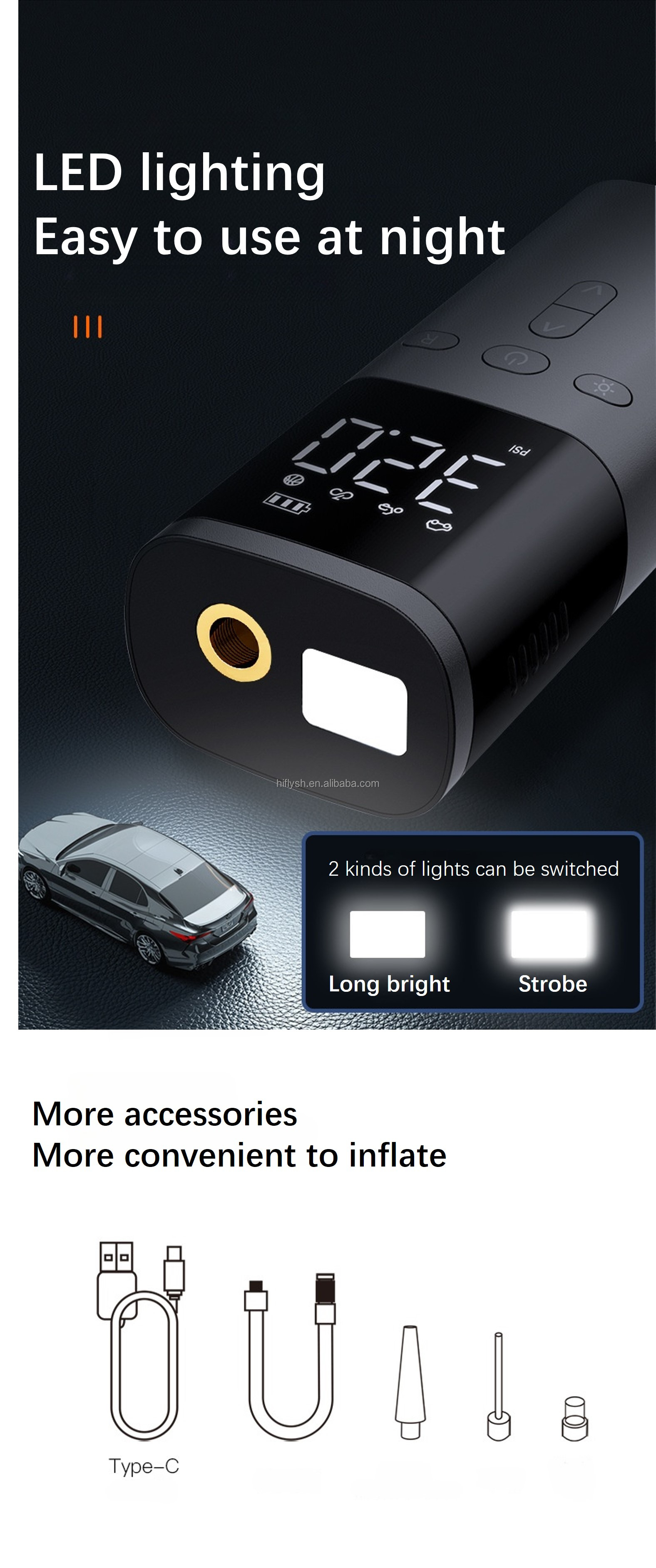 - The car air pump is equipped with a bright and long-lasting LED light, which can be used even in the dark