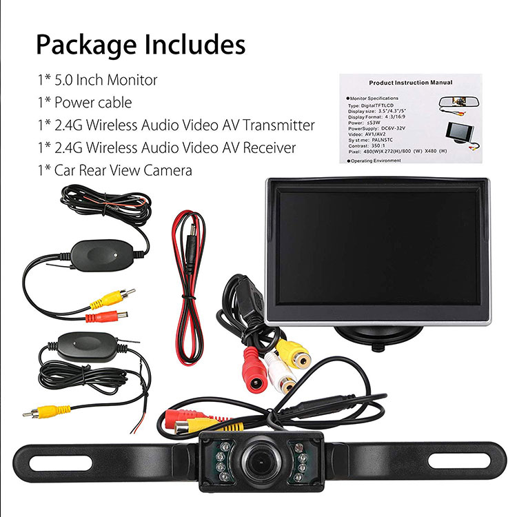 Car Wireless Rear View Camera System Full Color LCD Display with Wireless Transmitter Receiver