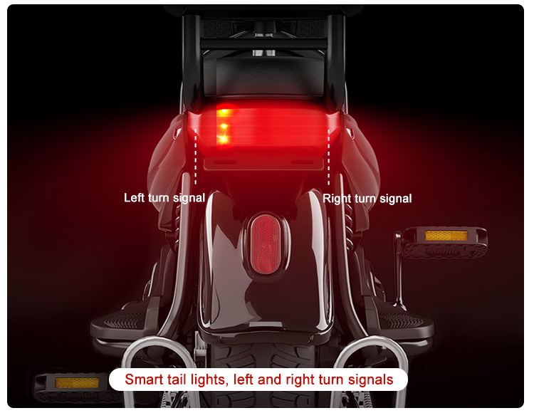 LED lens headlights, long range, strong light, low power consumption, long life, but with safety front and rear turn signals, night riding is safer.