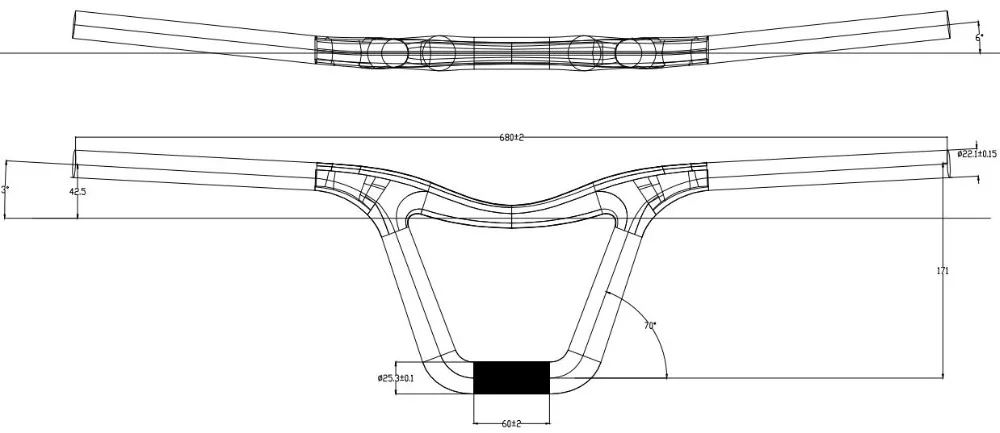 Carbon bmx handlebar bmx racing handlebar 25.3 diameter clamp sweep 6 back 3 up