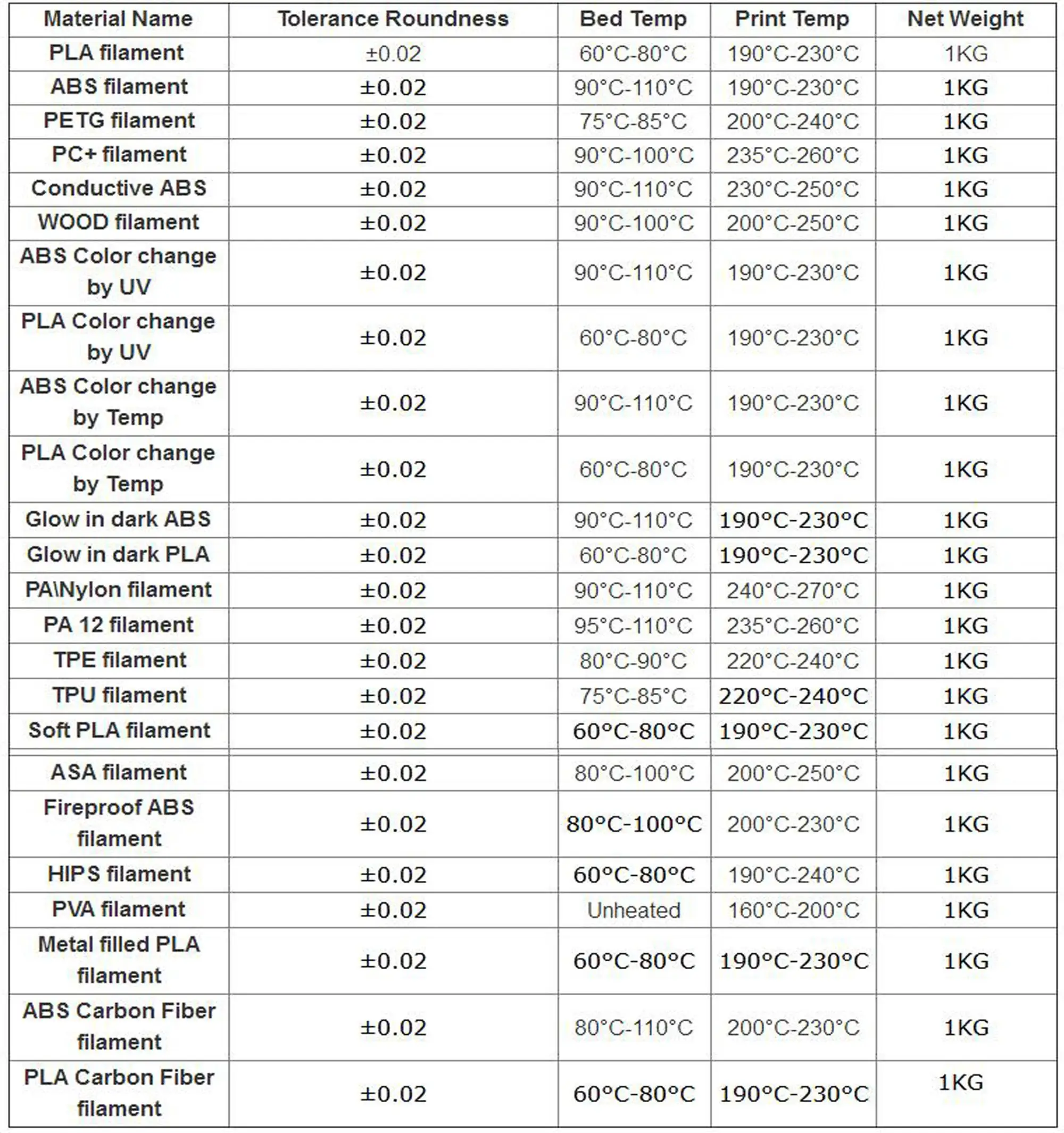 Diameter Size :1.75mm / 2.85mm / 3.0mm