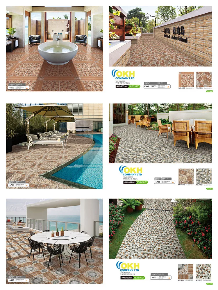 | Surface: | Non-slip; | Supply Ability: | 100000 Square Meters per Month 3D Inkjet exterior porcelain tile; |