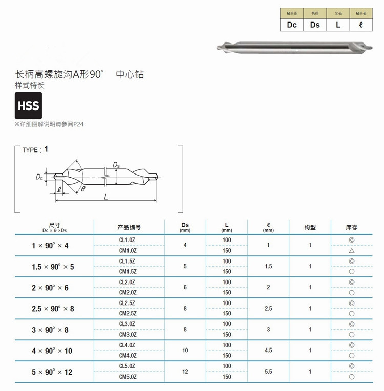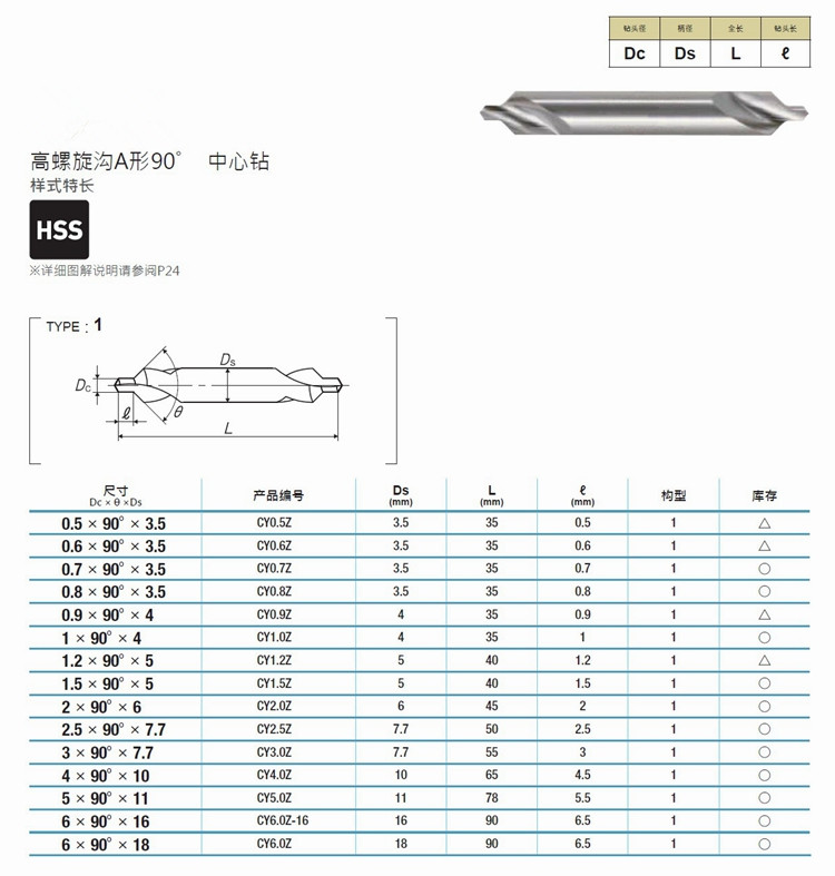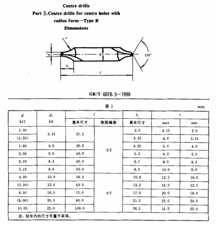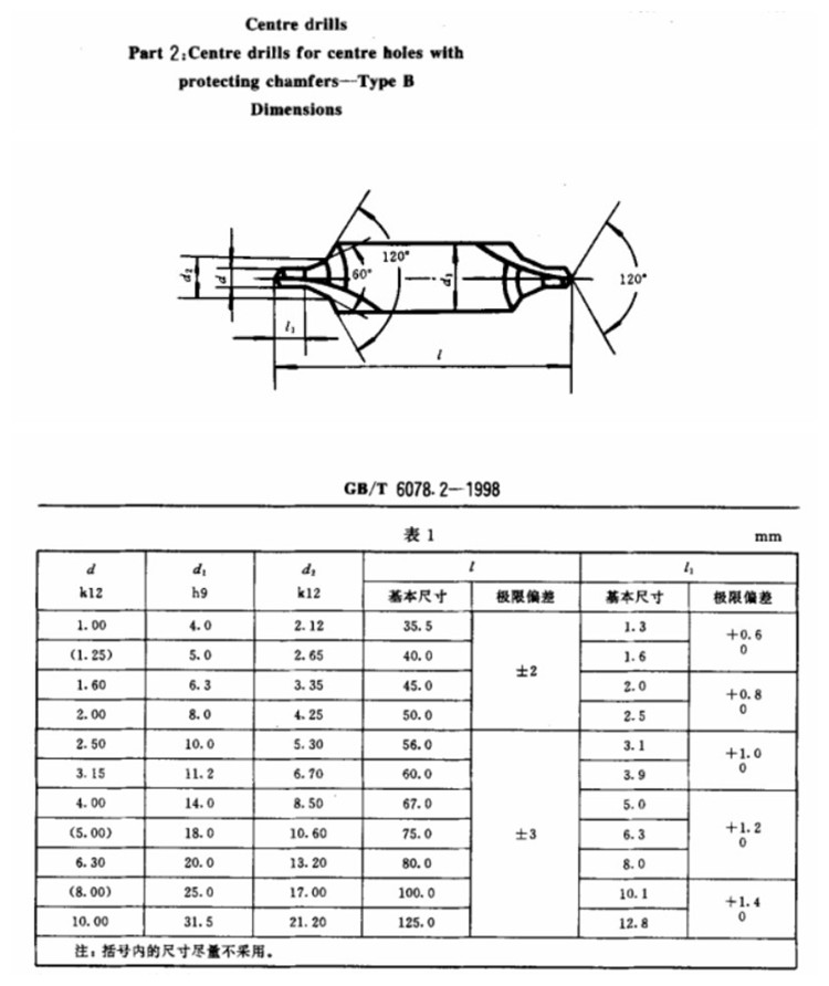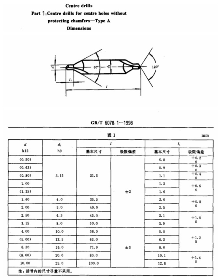 Center drill specifications: