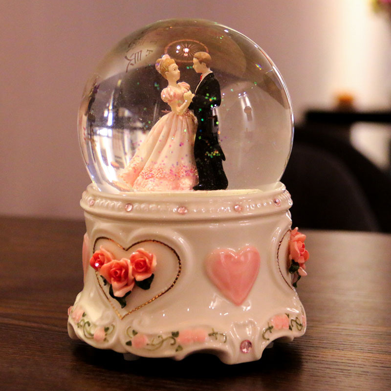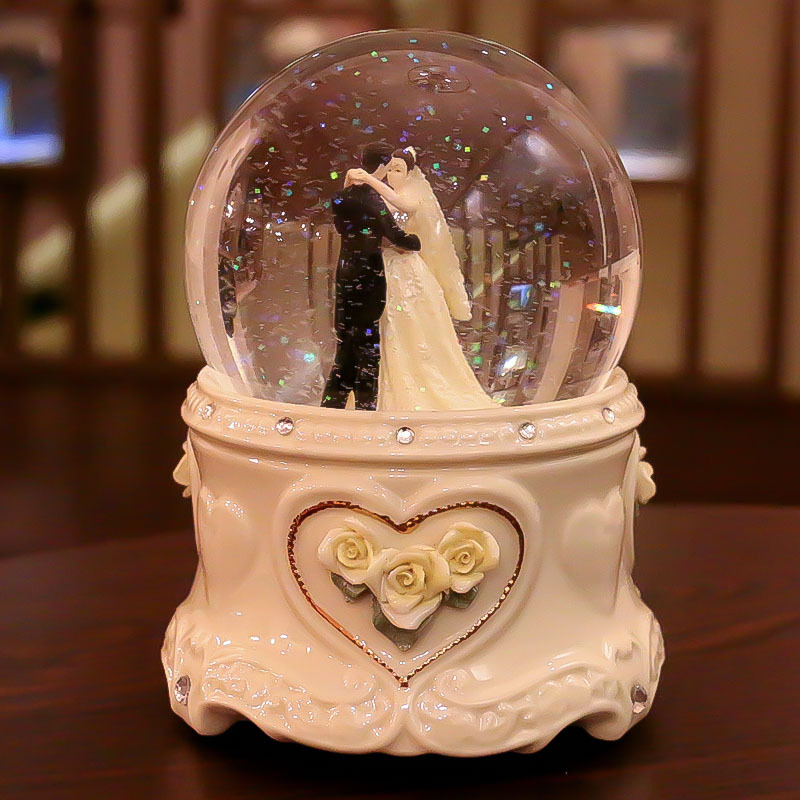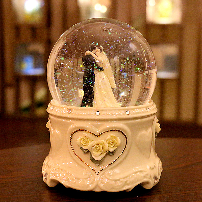 Ceramic Roses newlyweds Snow Globe Music Box Bedroom Decor Accessories Crafts Upscale Wedding Valentine's Gift For Woman