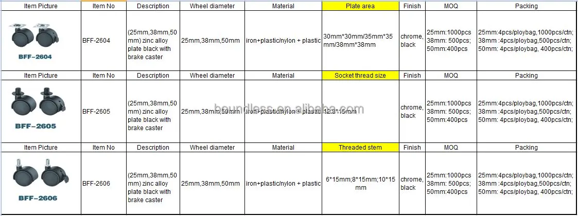 BFF-2604 Chair Nylon Caster/Nylon Office Chair Caster 50mm Furniture Chair Caster