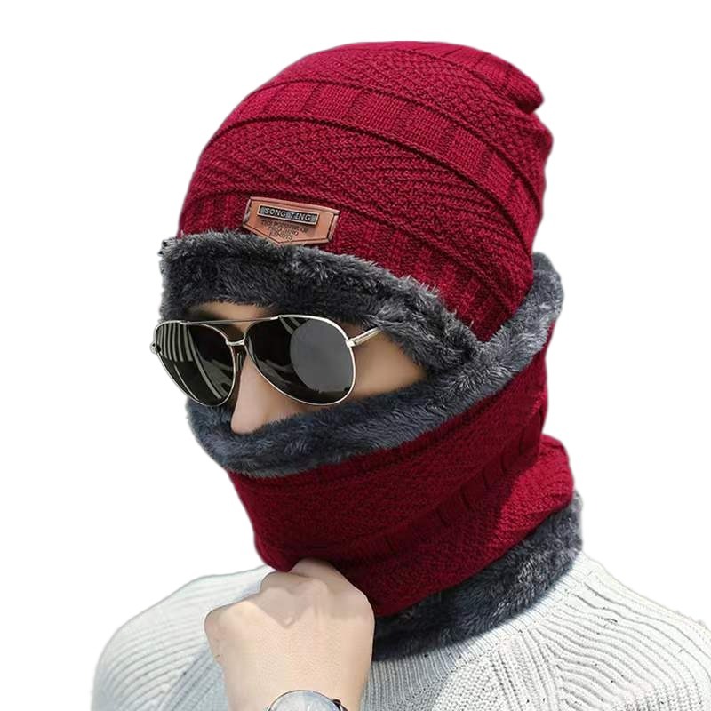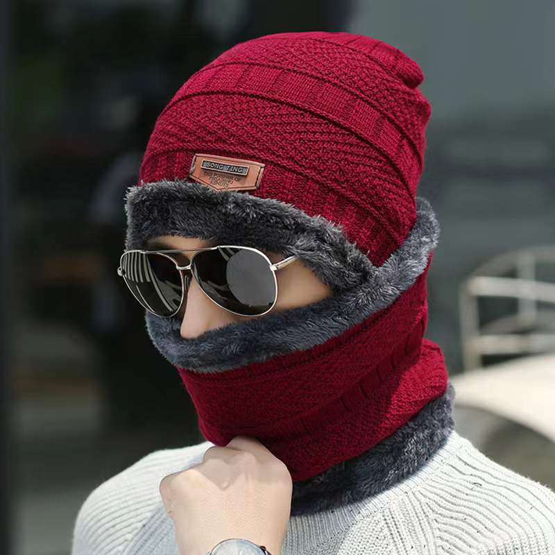 Cheap Price Soft Thickened Wool Ski Cap Men's Warm Cap Neck Warmer Winter Suit Hat Suit Men's Beanie Hat Men Winter