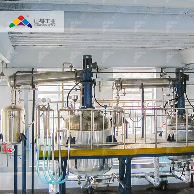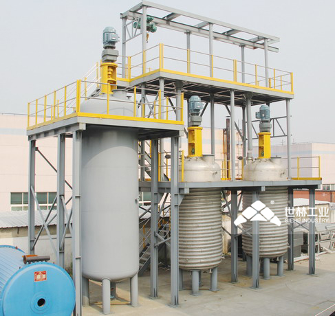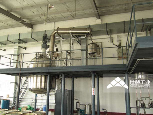 consists of: batching kettle(droplet add kettle), reactor, vertical distillation column, vertical condenser, horizontal condenser, water knockout drum, overflow tank, pipelines, attenuation harmony kettle, filling machine, etc main devices equipped with heating device(hot oil/steam boiler), cooling system(refrigerating machine/cooling tower), vacuum system, etc.