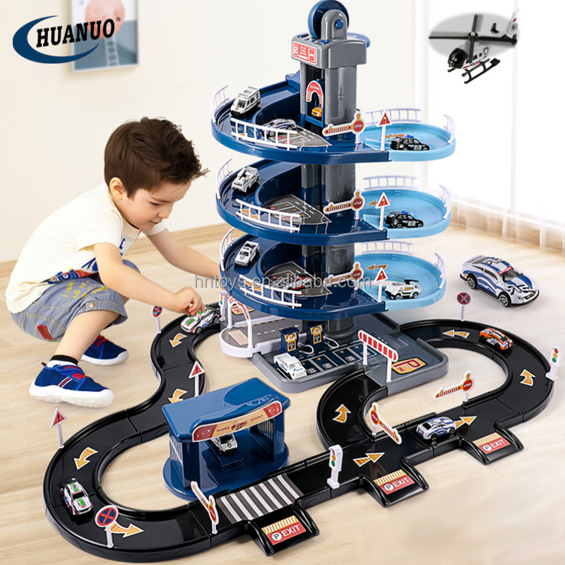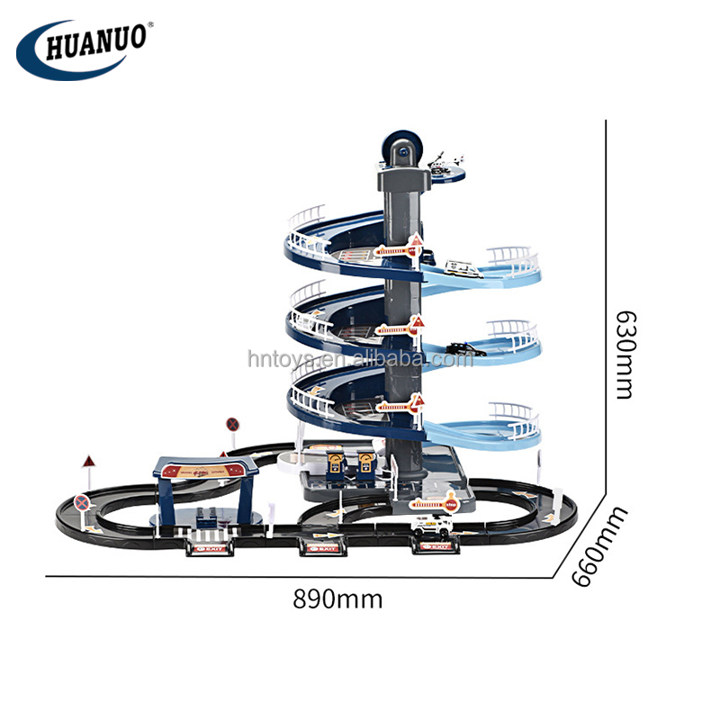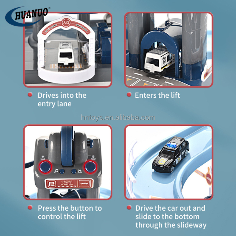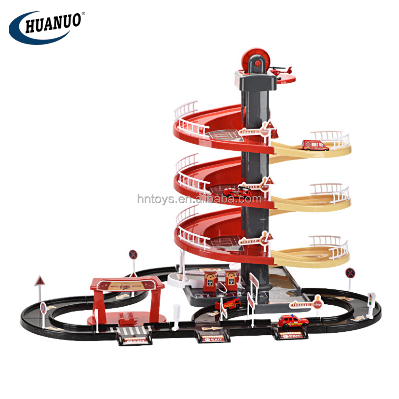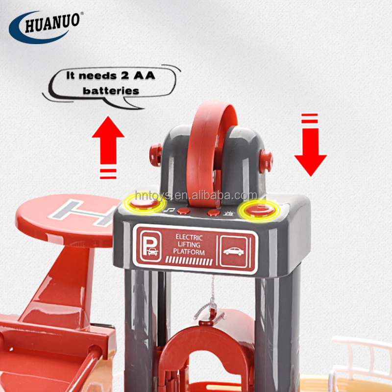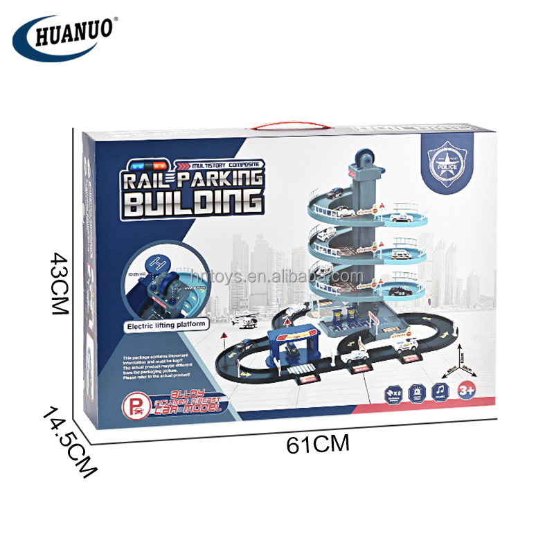 | model: | HN124415 Parking lot toy | Packaging Details: | Color Box Children's Indoor Toy City Garage Track Police Fire Truck Electric Alloy Parking Lot Toys |