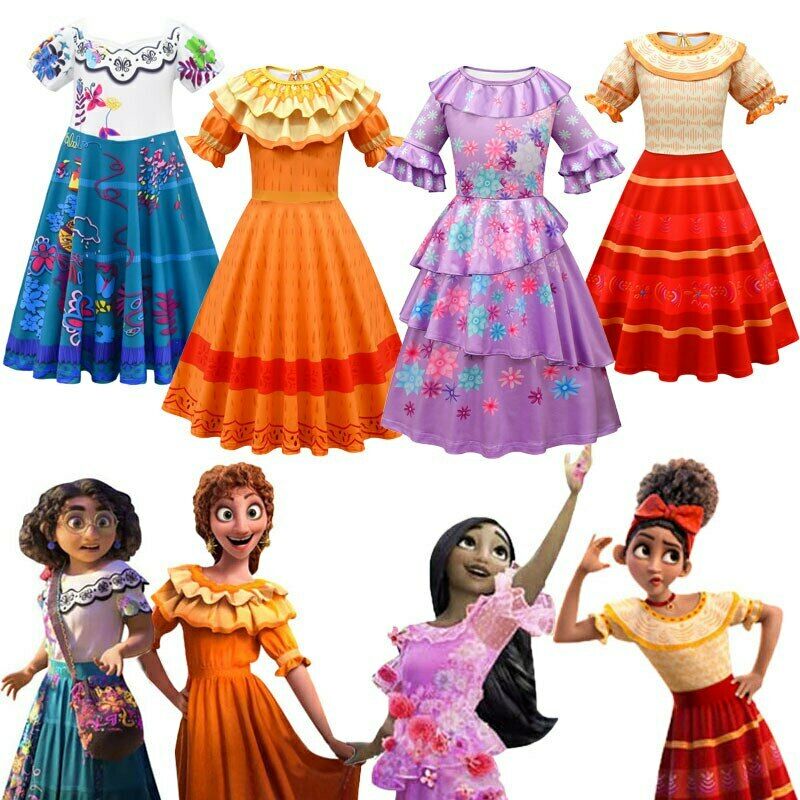 Children's Movie Encanto Mirabel Cosplay Costume Girls Fancy Princess Dress Carnival