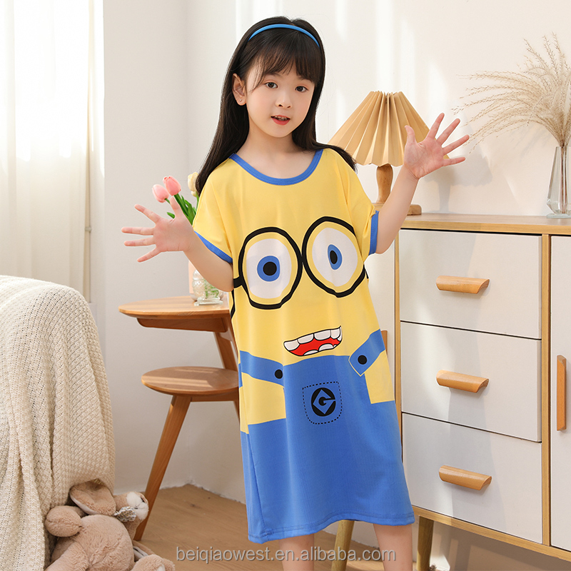 Children's Summer Spring Girls Princess Nightdress Youth Girls Pajamas Pajamas Short Sleeve O-Neck Fashion Cartoon Home Service