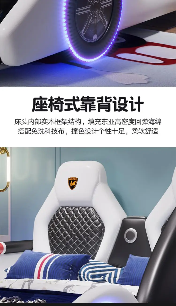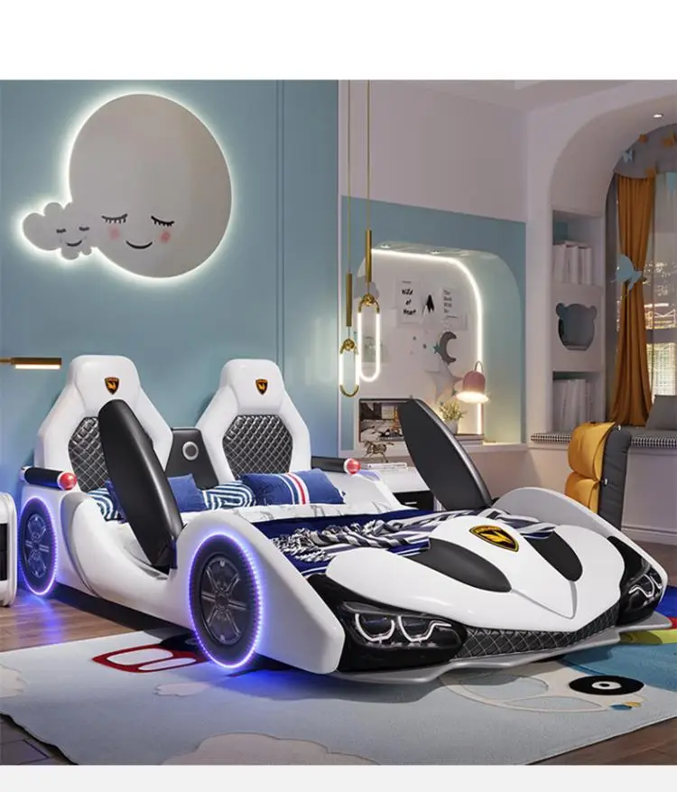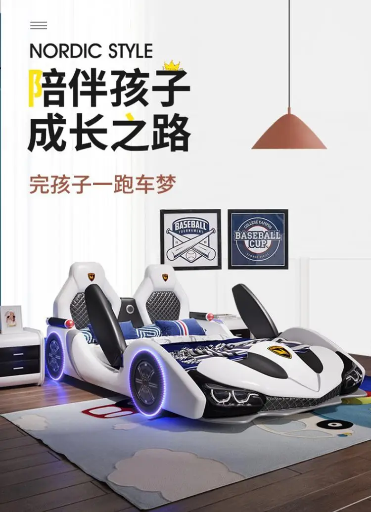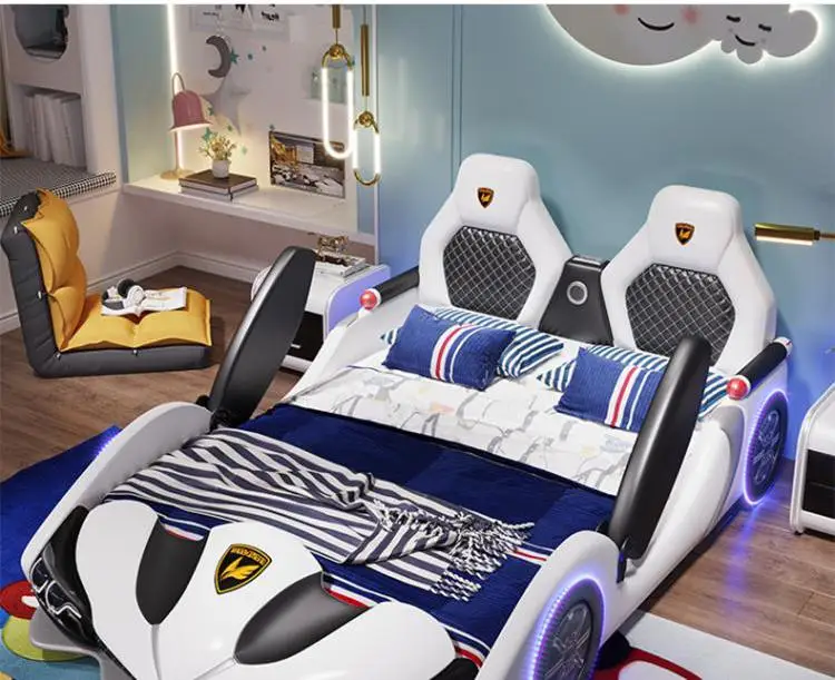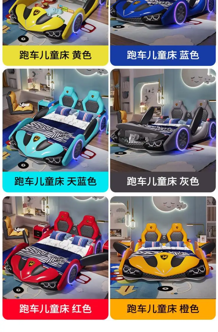 Children's bed boy girl creative car cartoon single bed sports car leather bed
