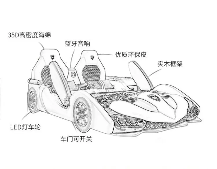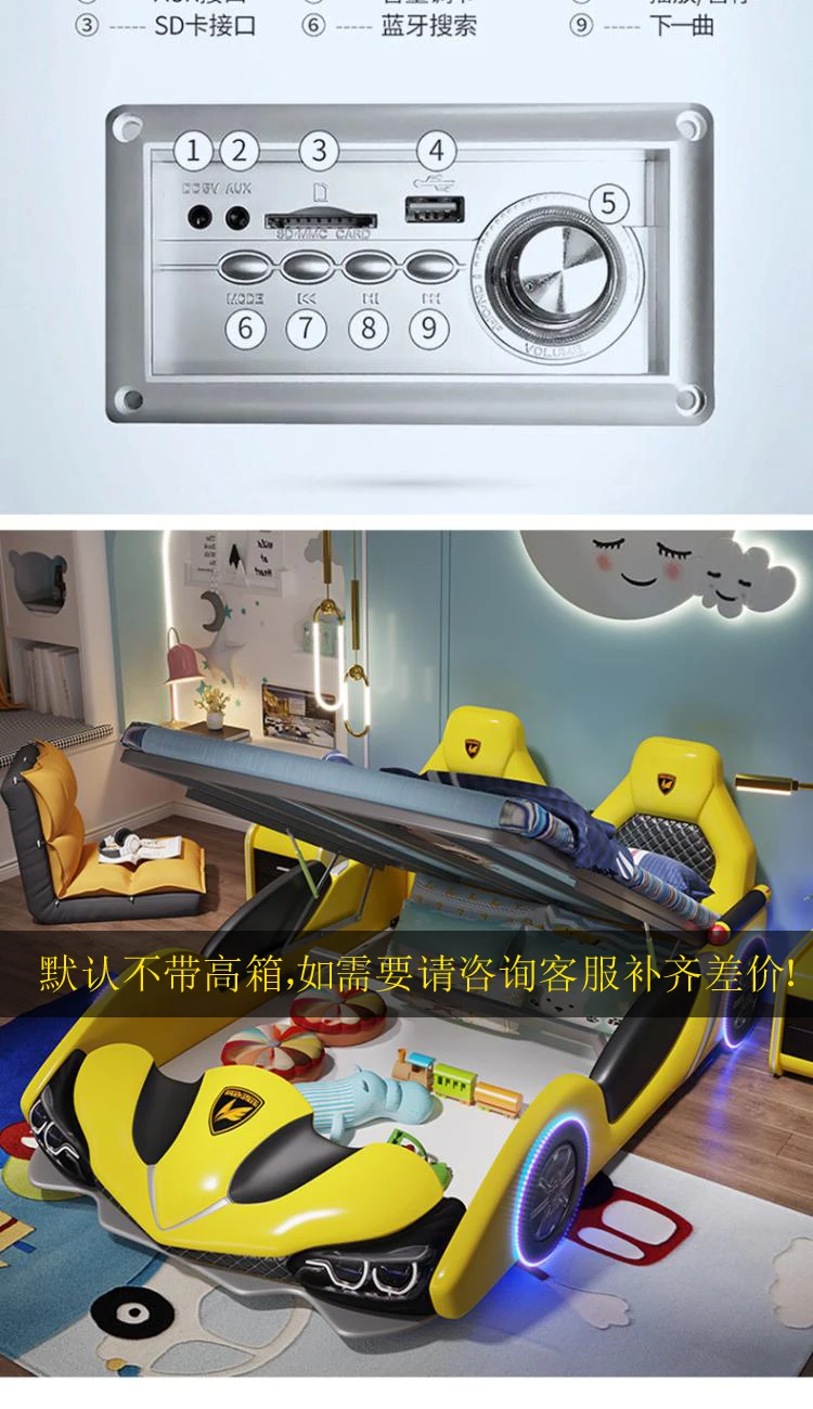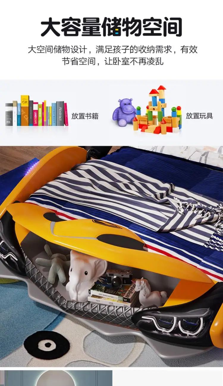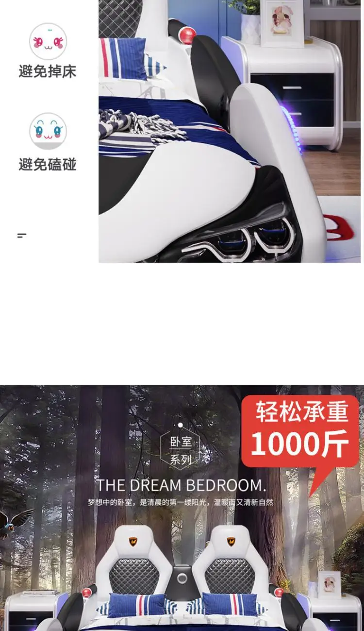Children's bed boy girl creative car cartoon single bed sports car leather bed