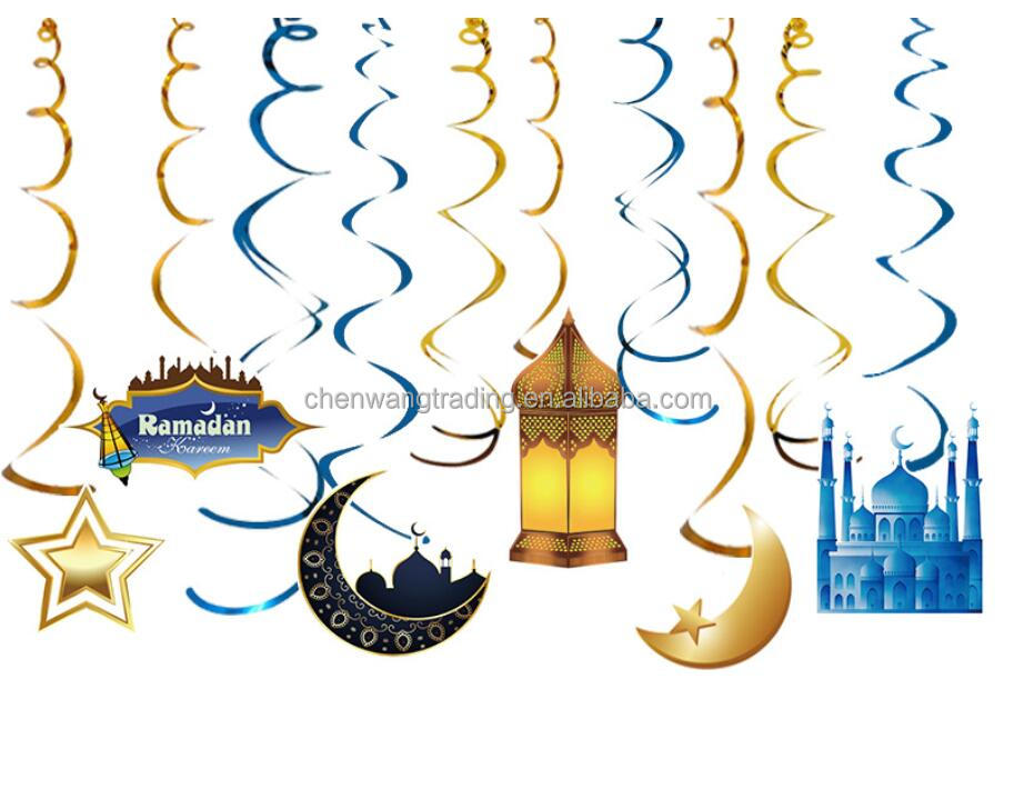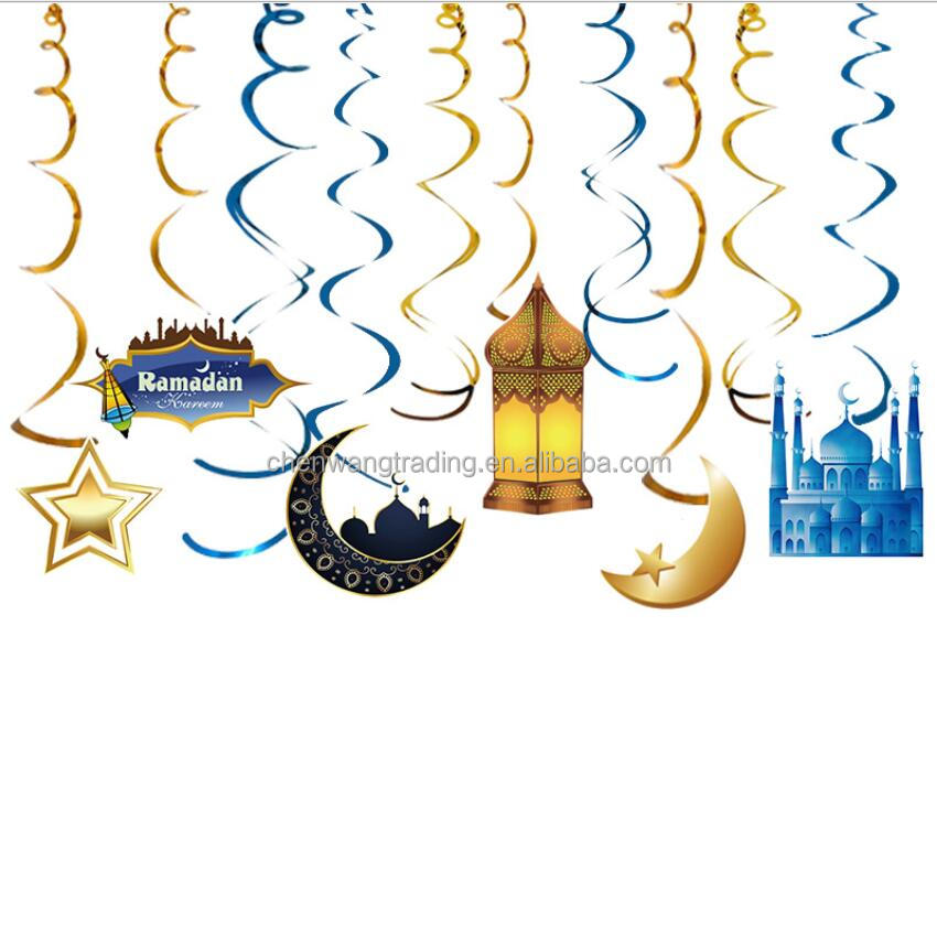 China Cheap Mubarak Festival Decorations Hanging Banner Moon Stars Swirl Hanging Decorations Ramadan Islamic Party Decoration