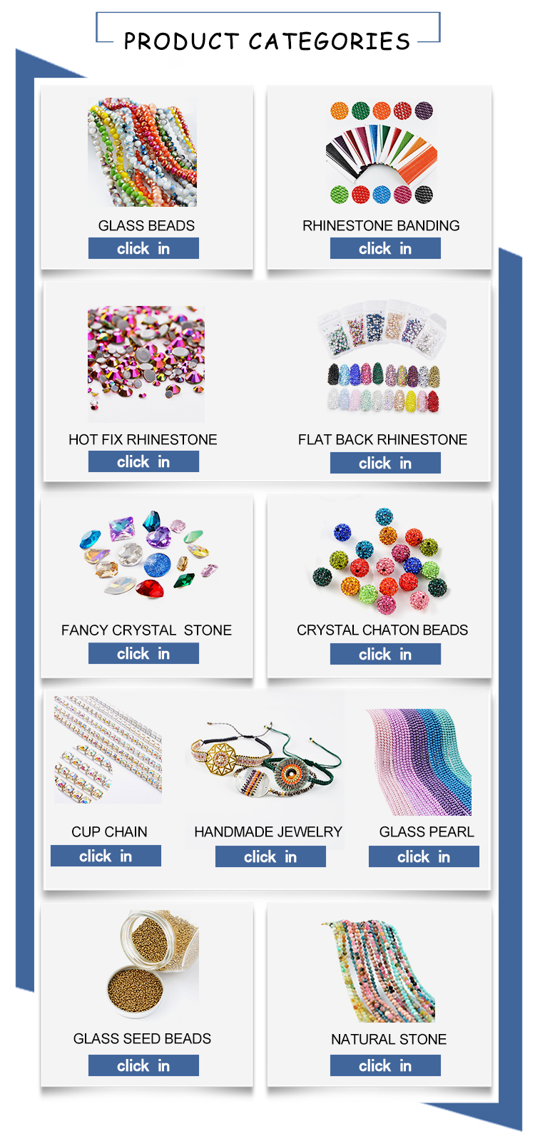 A: We have more than 6 years of raw material production experience and more than 10 years of export experience. We have a wide variety of colors and designs, for rhinestone trimming, we have more than 80 plastic colors and 100 designs; for DIY handmade collections, we have more than 500 designs and 100 colors for each design. What's more, we can customize the colors and designs that customers need. In addition, we always focus on new model design and quality control, so we have earned a global reputation, you can see our factory scale and comprehensive capabilities on our website.