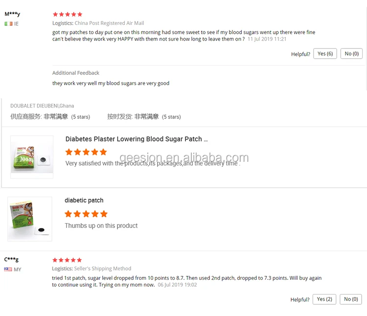 4.After using diabetic patches, if you are taking another pills, please do not stop it, Please measure blood sugar every day and write it down. 80% of patients, after 2-3 weeks later, blood sugar will be reduced, then reduce the pills slowly, step by step. And finally, at last, other drugs can stop