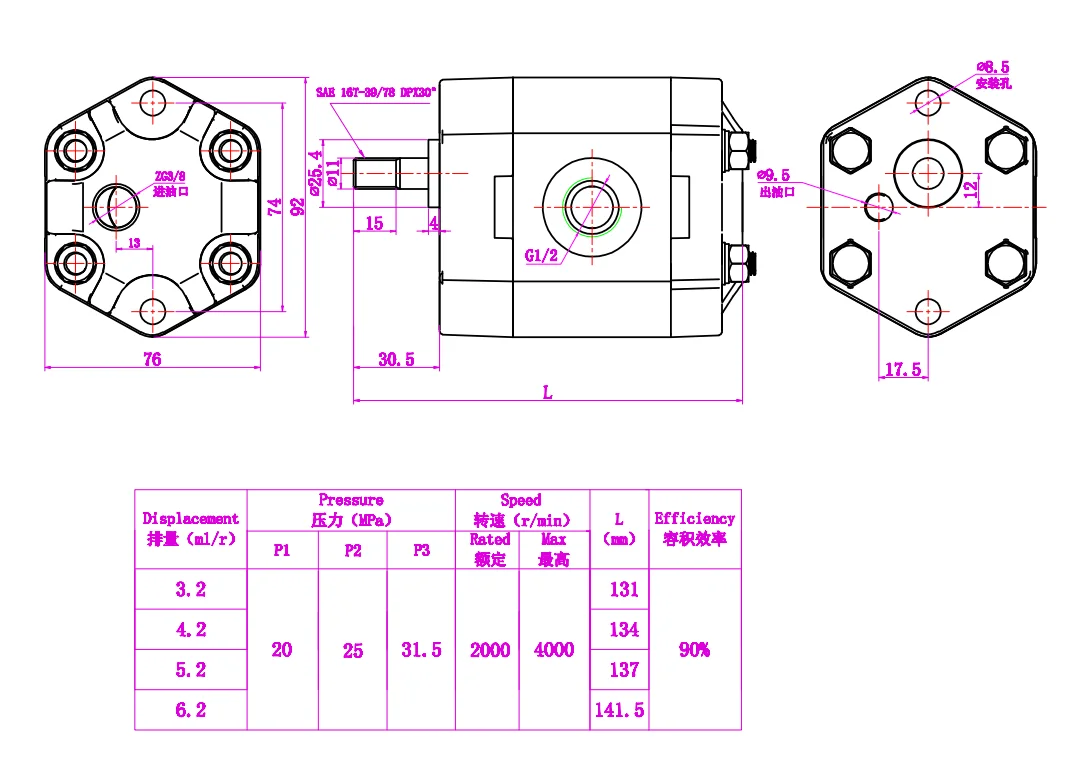 The CBYA gear pump consists of a gear pair supported by two aluminum bearing blocks,a housing.a front cover and a rear cover. The CBYA Series of Gear Pump features high mechanical and volumetric efficiency,low noise level as well as low weigh/power ratio. It is widely used in the DC power units for car jumping and ifting machines.