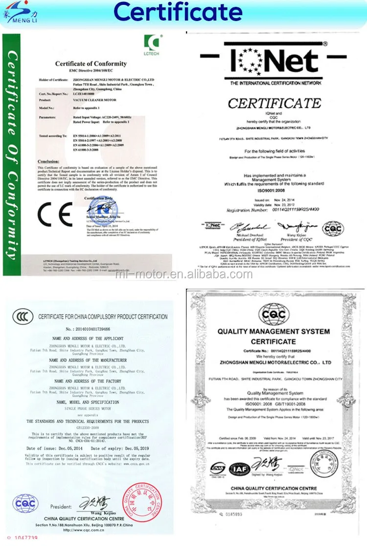 Mengli specialized in researching, developing, producing and exporting household electric motor for almost 20 years.We apply technical certificate for our product, such as CE, CCC, ISO9001, etc. We have professional and united teams to serve our clients.