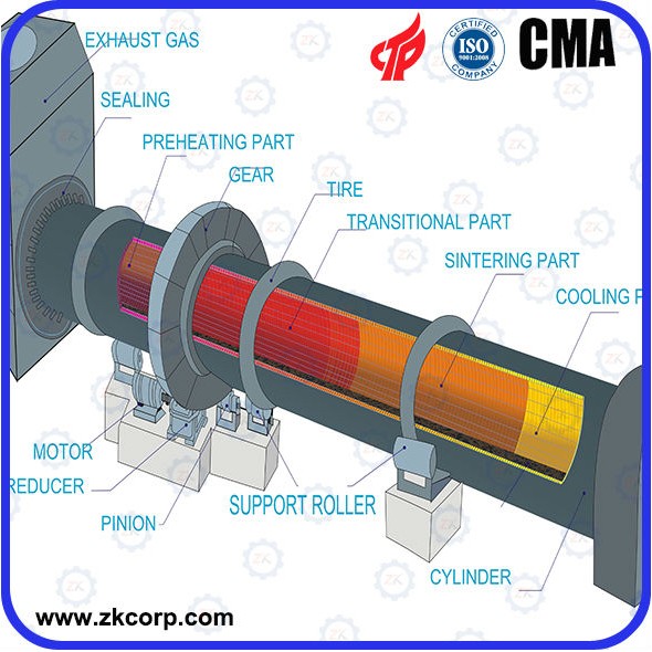 The rotary lime kiln is composed of cylinder body, supporting device, thrust roller supporting device, driving device, movable kiln head, kiln tail sealing device, coal ash pipe device, etc. The kiln body and level. The entire kiln body is supported by a roller support device, and is equipped with a thrust roller device to control the up and down movement of the kiln body. (Call us for more information)