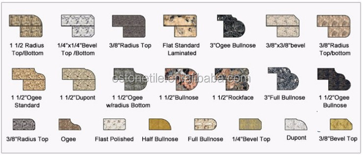 Italian gray, Carrara white, Oriental white, crema marfil, Panda white, etc. | |