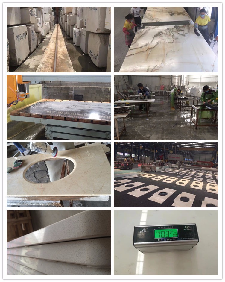 Although the amount of raw materials used in composite marble is less than that of natural marble of the same volume, the physical properties of composite marble are higher than those of natural marble. The main reason for the high price is that composite marble has more than ten processes for processing.