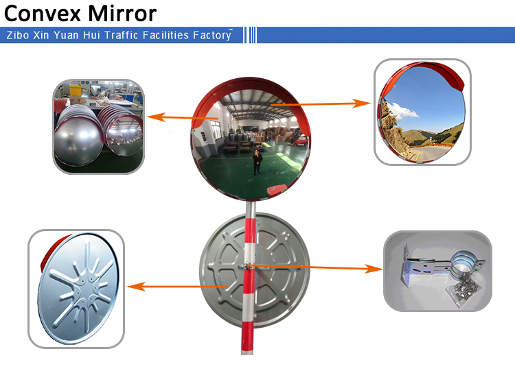 Traffic Convex Mirror can be applied to intersections, crossroads, parking lots to avoid accidents, also can be used in supermarkets, retail stores, banks, workshops. Allows for reduction of theft and vandalism in retail stores and monitoring of assembly lines, conveyor belts, robotic systems and other industrial production operations. Equipped with adjustable swivel and mounting bracket for infinite adjustment. A variety of sizes and configurations are available to meet virtually any application requirement.