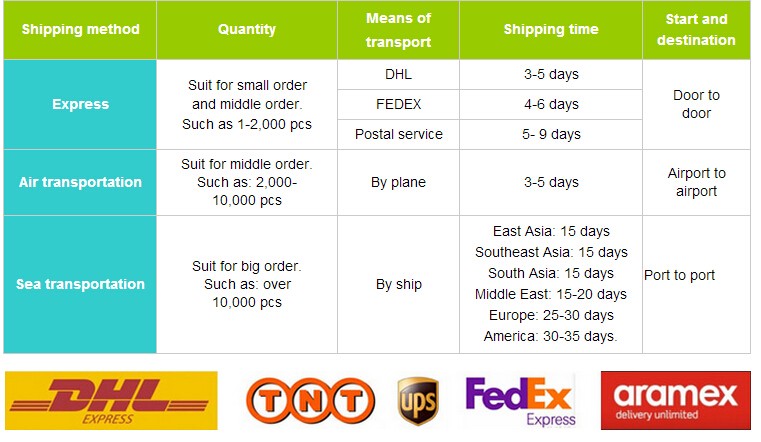4. Fast: We have our own designers, machines and workers. Our sample delivery time is 3~5 days, production delivery time is 5-12 days