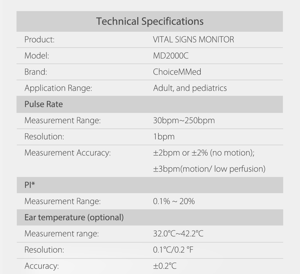 ChoiceMMed MD2000C Vital signs monitor with new design