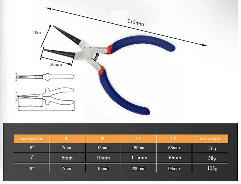 It is made of No. 45 high-quality high-carbon steel through forging, polishing, quenching, and plastic dipping. It has good toughness, high strength and is not easy to deform. The color of the handle is blue and red, and it can also be customized according to customer needs, including green, yellow, purple, black, etc.