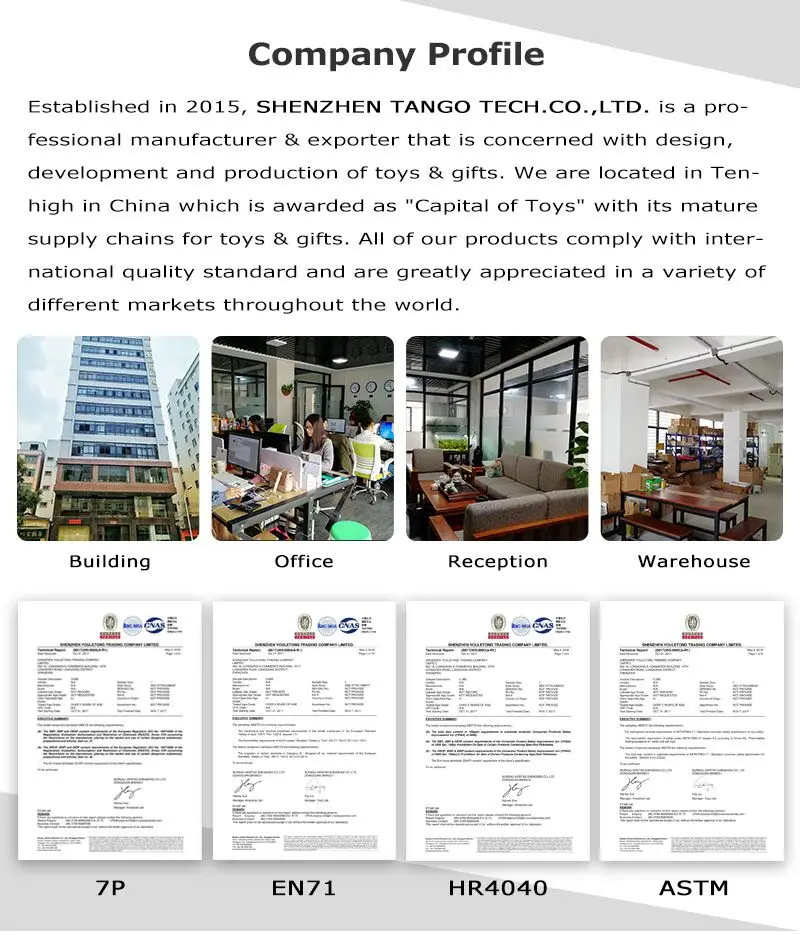 A5: Normally we have CE certification (EN71+7P) and CPC certification (ASTM+HR4040) for most of the products we are selling. Please kindly contact our sales manager for more details.