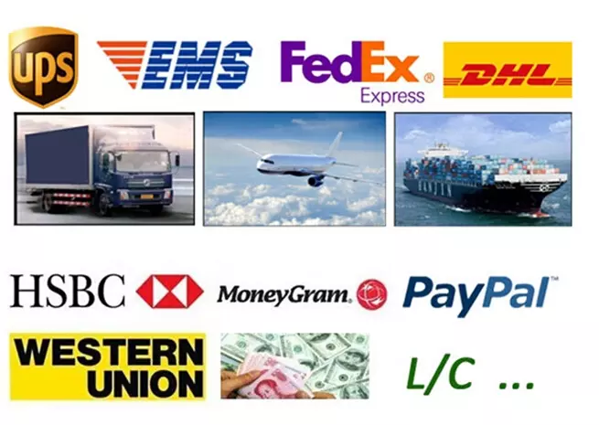 4. Shipment:Small order will be sent by DHL/UPS/FEDEX/EMS, our forwarder has cooperated with us for 6 years. Large order we will send by air or sea, you can use your own forwarder or use ours.