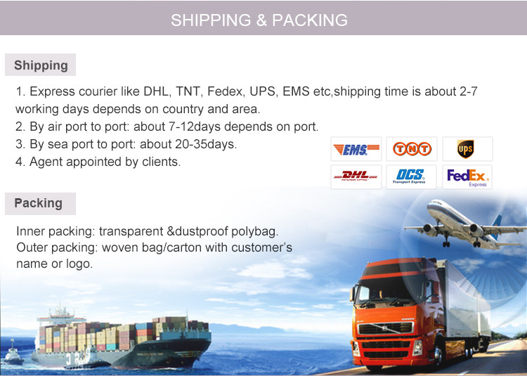 | Minimum order quantity | 50 | Package | Plastic bags and cartons |