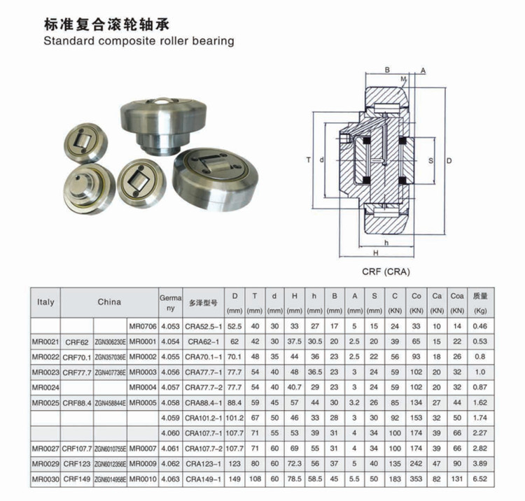 Standard composite roller bearings: TR050.TR060.TR0750.TR080.TR090.TR100.TR110.TR120.TR150.TR013A.TR014A.TR012A 4.0053; 4.0054; 4.0055; 4.0056; 4.0057; 4.0058; 4.0061; 4.0060; 4.0062; 4.0063; 4.0064