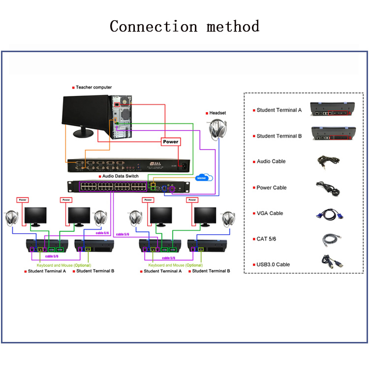 product structure: Student terminals have a 3-inch display and keyboard. No LCD monitor, keyboard, or mouse required. studentcannotWatch the video. Has the basic functions of a voice room. |