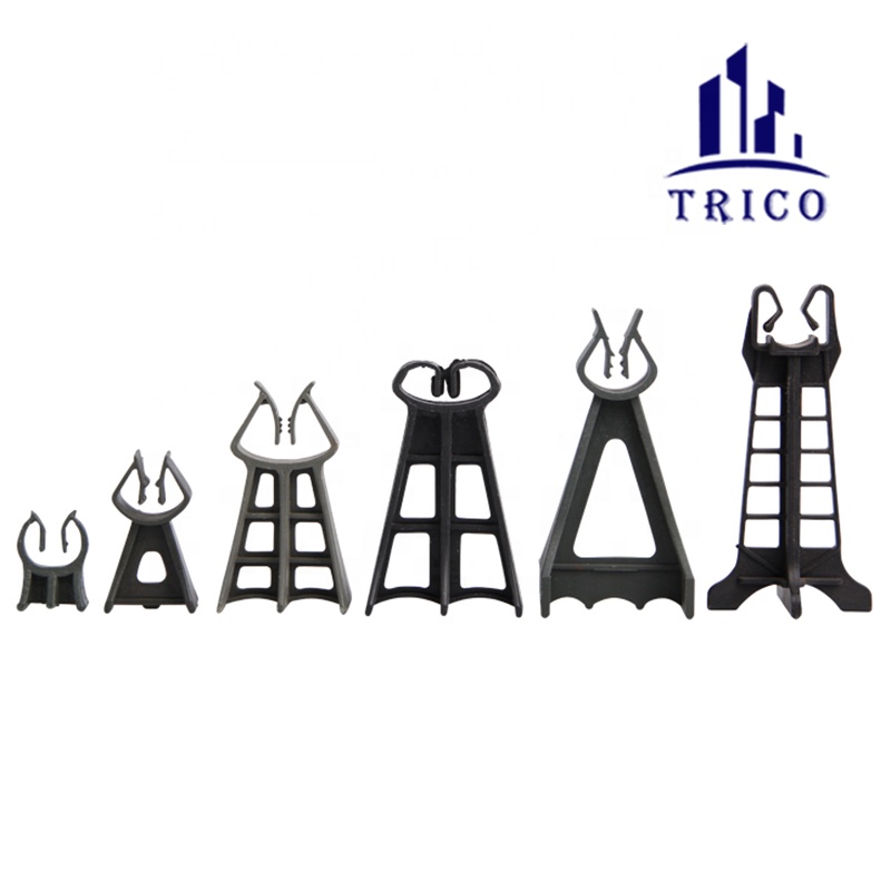 Plastic Rebar Chairs for Concrete Support are used to support rebar pads or cages at the desired height to achieve proper concrete coverage and maximize the benefits of the rebar.