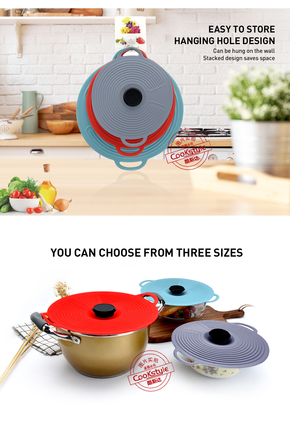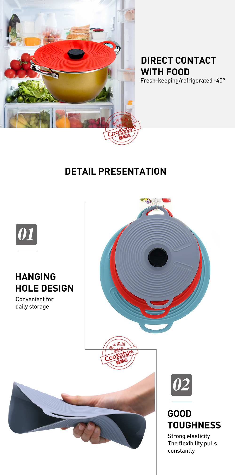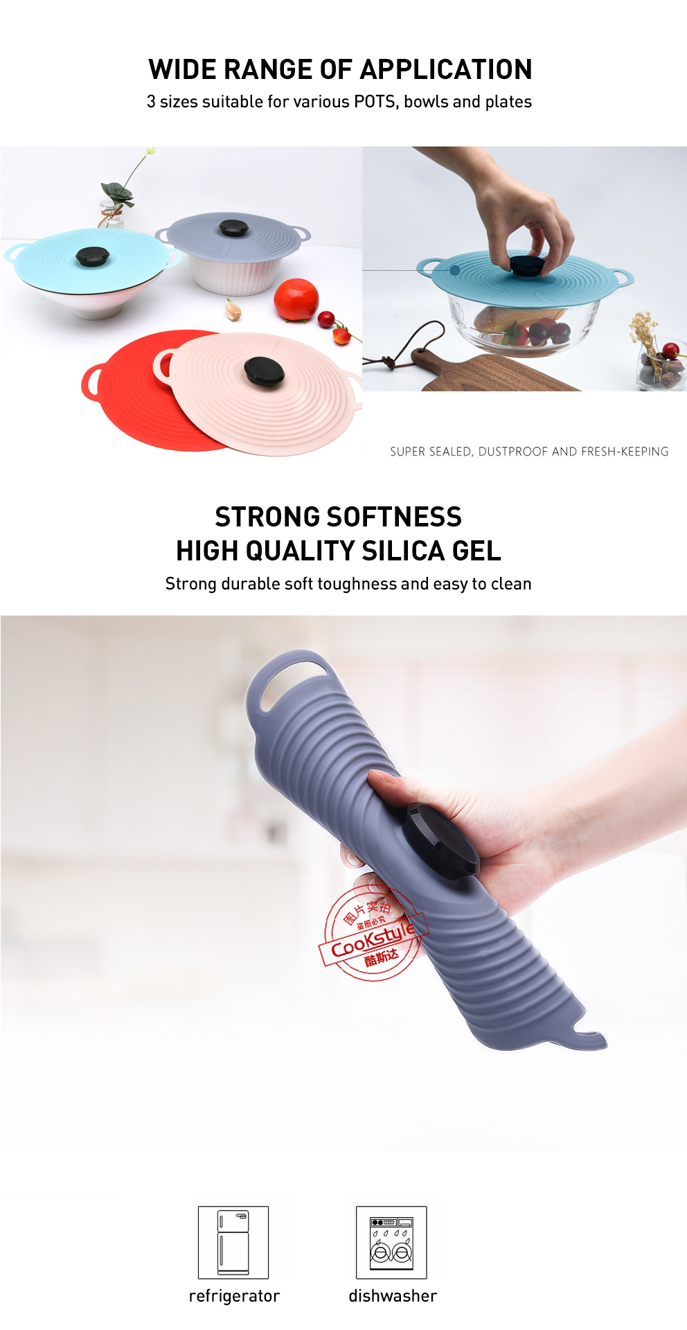 CookStyle Factory Spill-Resistant Seal Silicone Fresh Lid Insulated Silicone Pot Lid