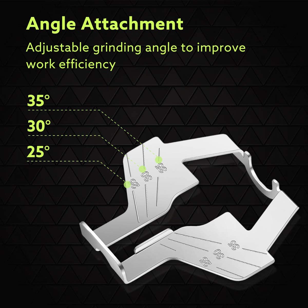 - [Efficient work] Fast cutting is possible only when all sharp blades are even. But it's hard to do that with manual files. With this electric chainsaw sharpener, you can quickly sharpen all your knives to the same angle and depth by simply fixing the sharpening angle and moving it back and forth across the groove, making your work more efficient.