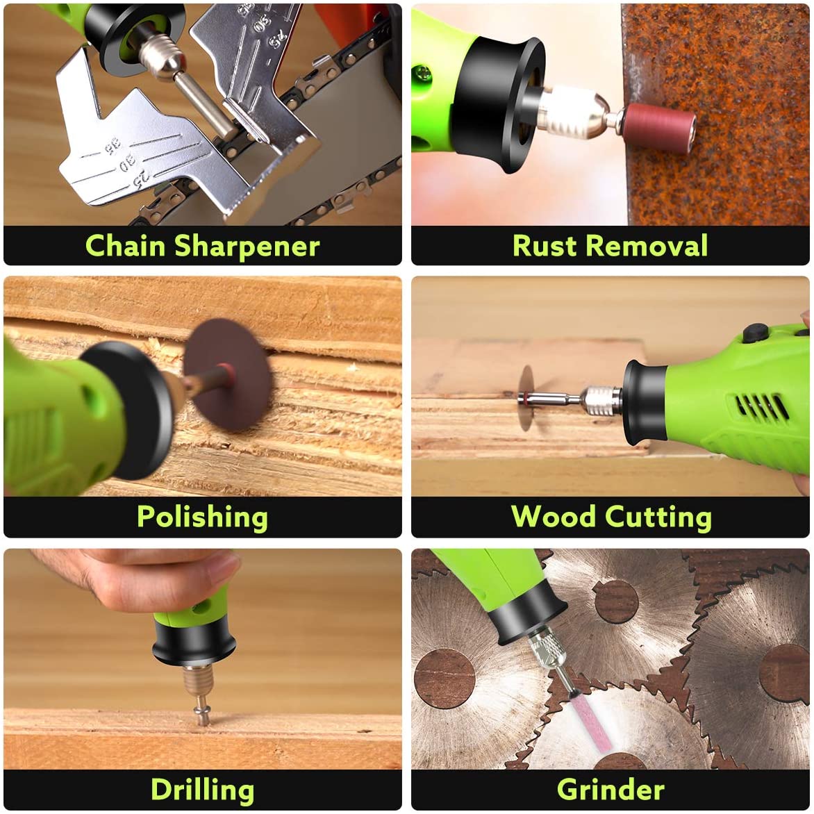 - [Easy to use] With safety switch. Whether you're new to the tool or an expert in the field, this powerful chainsaw sharpener allows you to easily smooth your chain in minutes. Easy-to-install accessory; quick adjustment sharpener; easy and even sharpening on the blade. Great for sharpening blades, scrapers, scissors, hos and shafts.