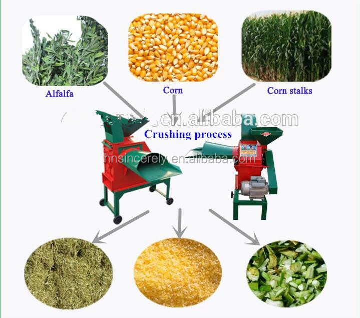 2. It is used to cut all kinds of fresh or dry grass and straw, such as peanut straw, corn, corn straw, etc. The other is used to crush various grains, such as corn, wheat, beans, etc.