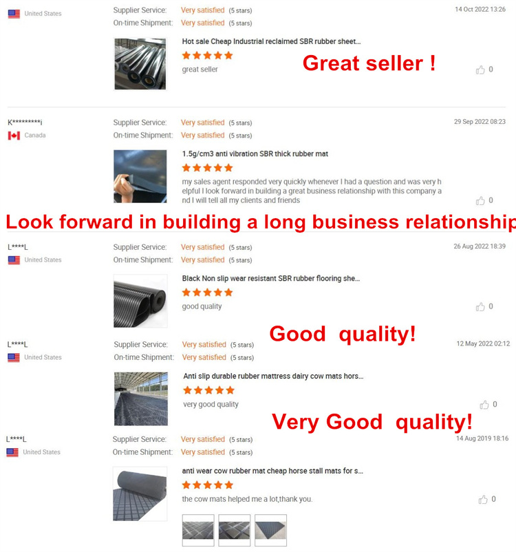 Cow mattress 2-layer structure:The bottom is a 30mm sponge pad; the surface is a 4-8mm rubber plate.Benefits of cow mattresses:Increase cow lying time to increase milk production. The more comfortable you create for your cows, the longer they will lie down. Cows produce five times more milk when they are lying down than when they are standing.