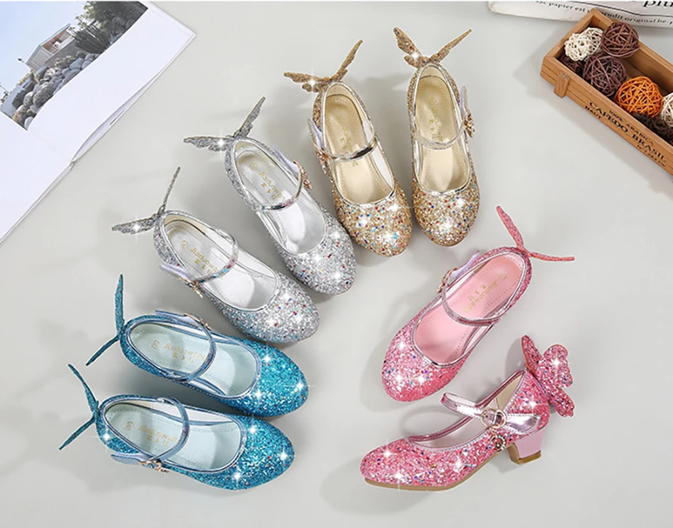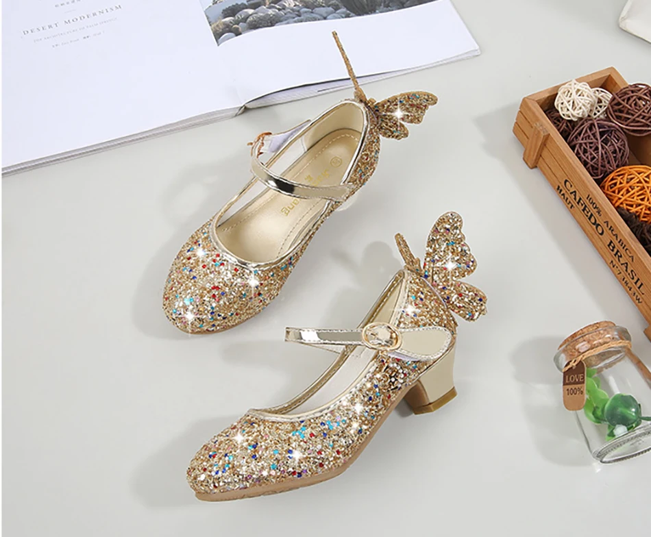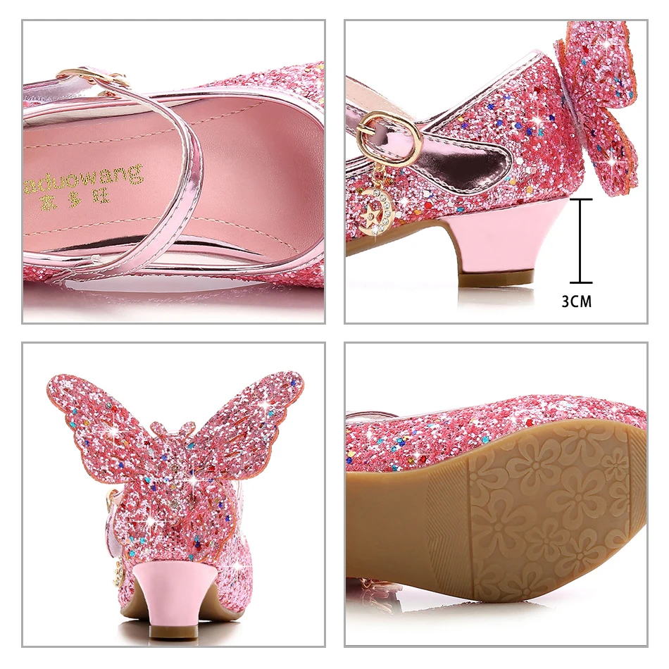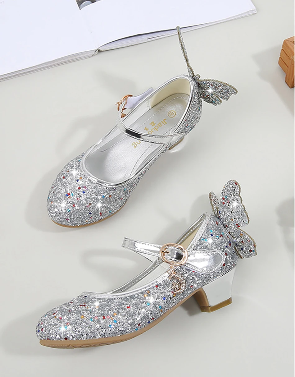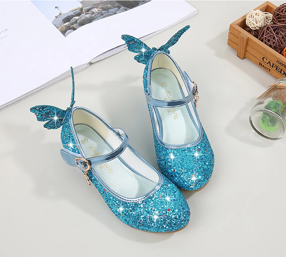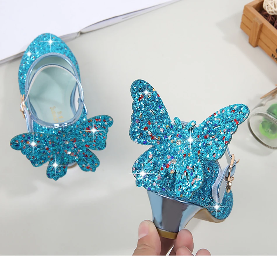 Crystal Girls Shoes Elsa Aurora Glitter Sandals Butterfly Cinderella Belle Sofia Rapunzel Shoes Birthday Gift For Kids