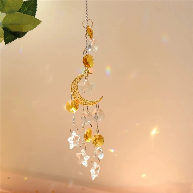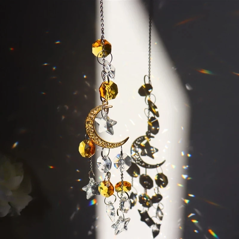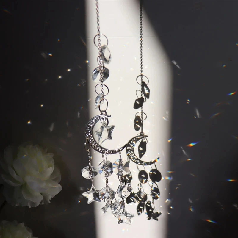 2. This window hanging ornament consists of several clear crystal balls and a moon ornament, this combination is creatives and delicate, providing you with different visual appeal.