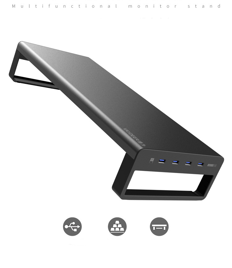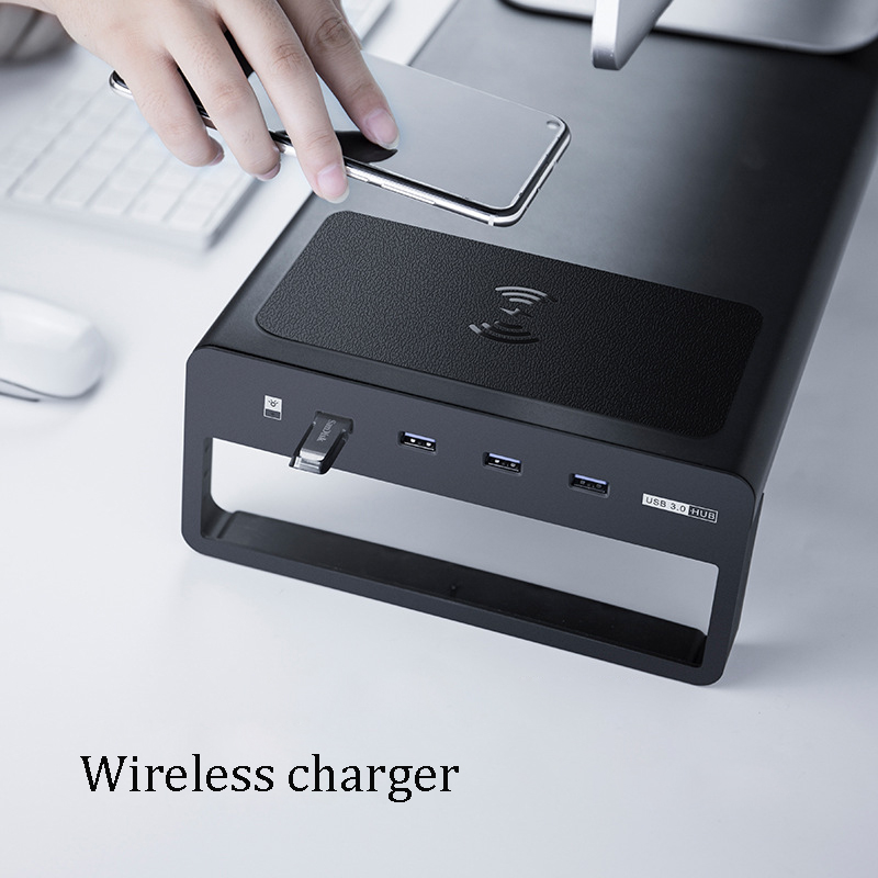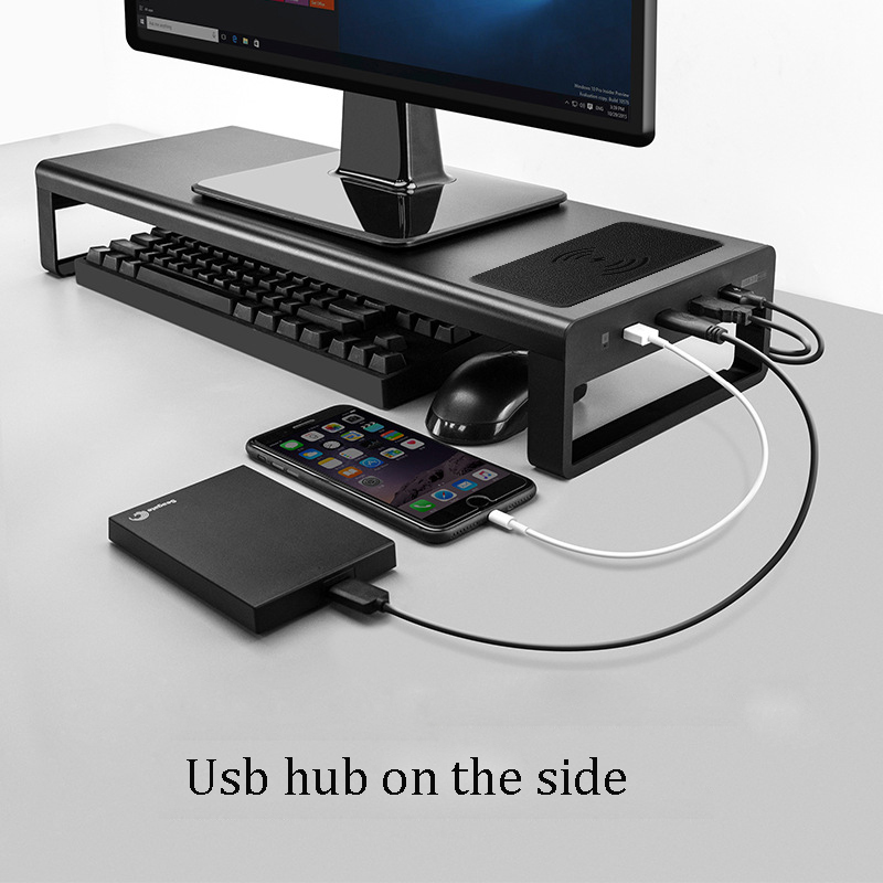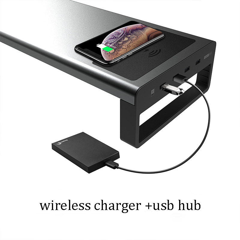 Custom 4 Ports USB 3.0 Metal Monitor Desk with 15w Wireless Charger Tablet Stand Laptop Stand
