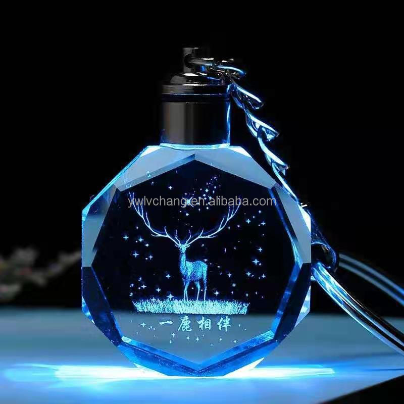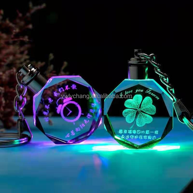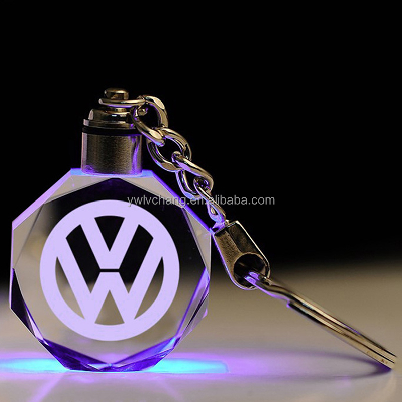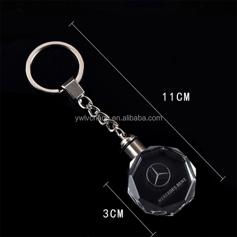 Custom Car Logo Keychain Laser Engraving LED Light Keychain Creative Crystal Keychain