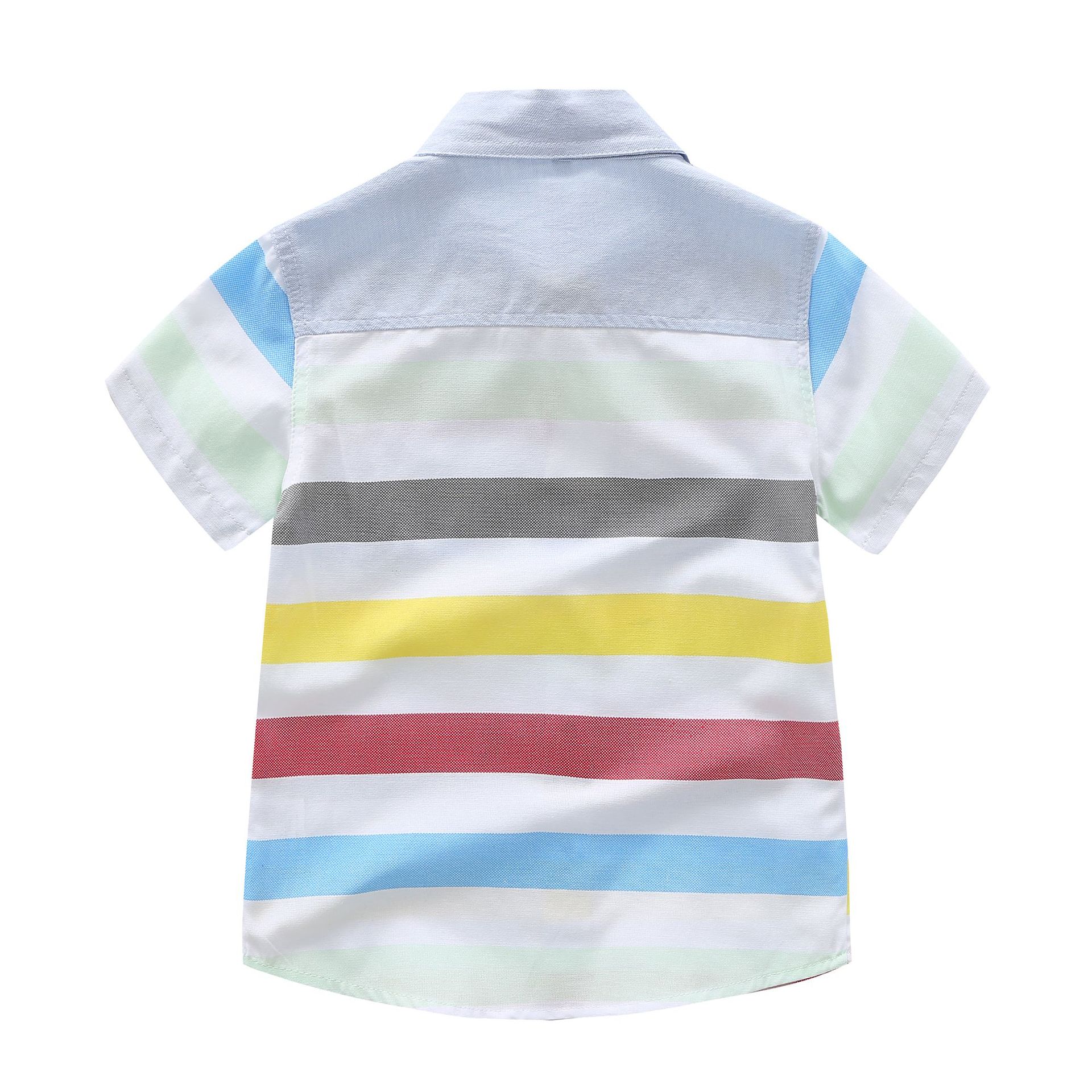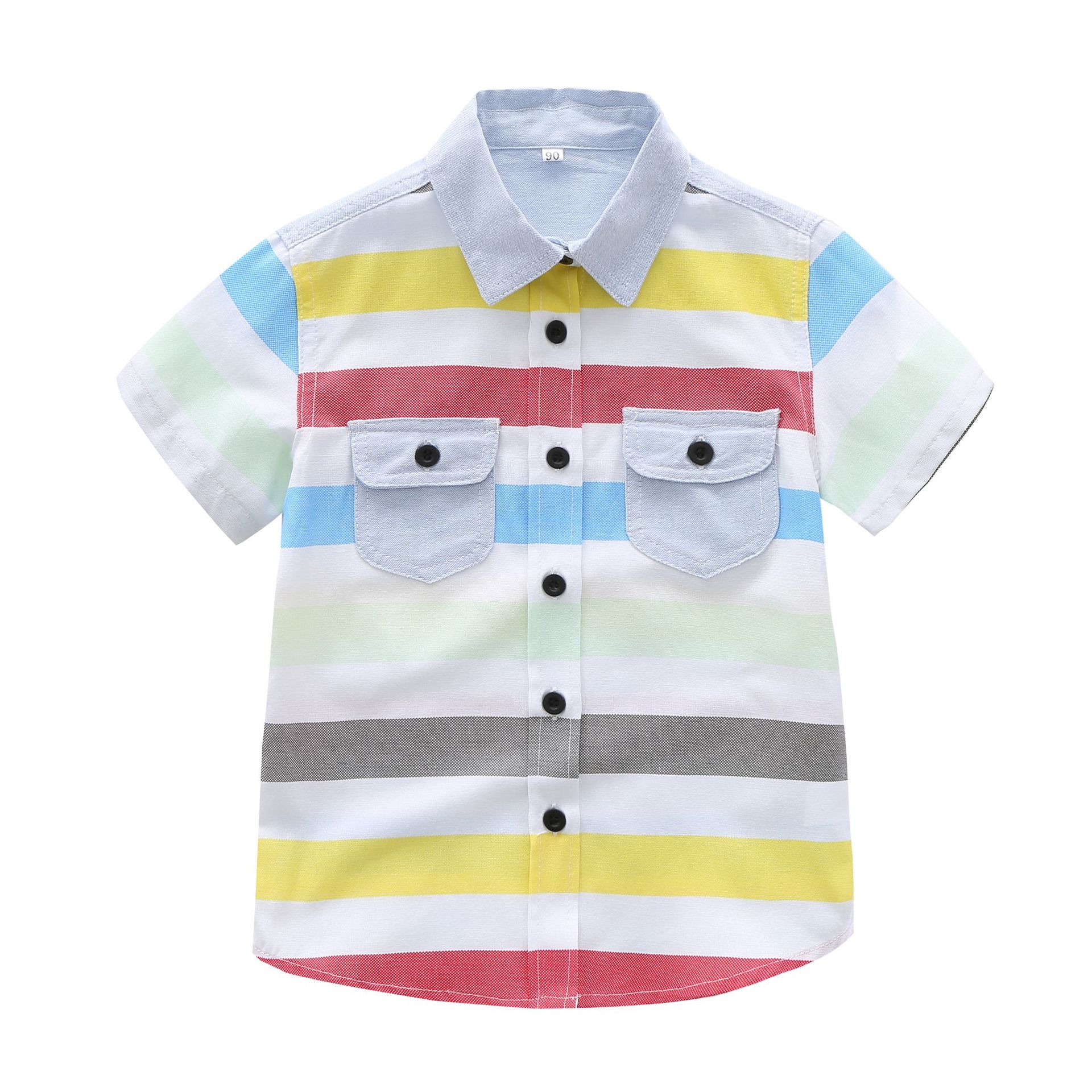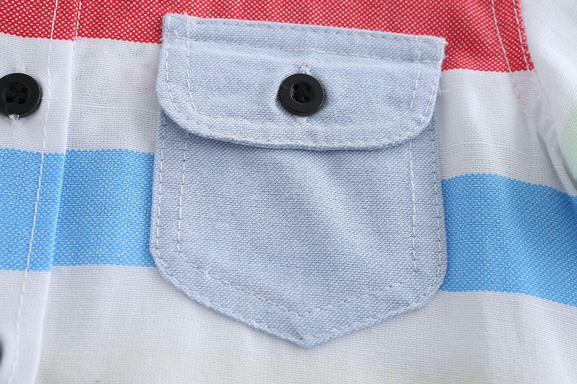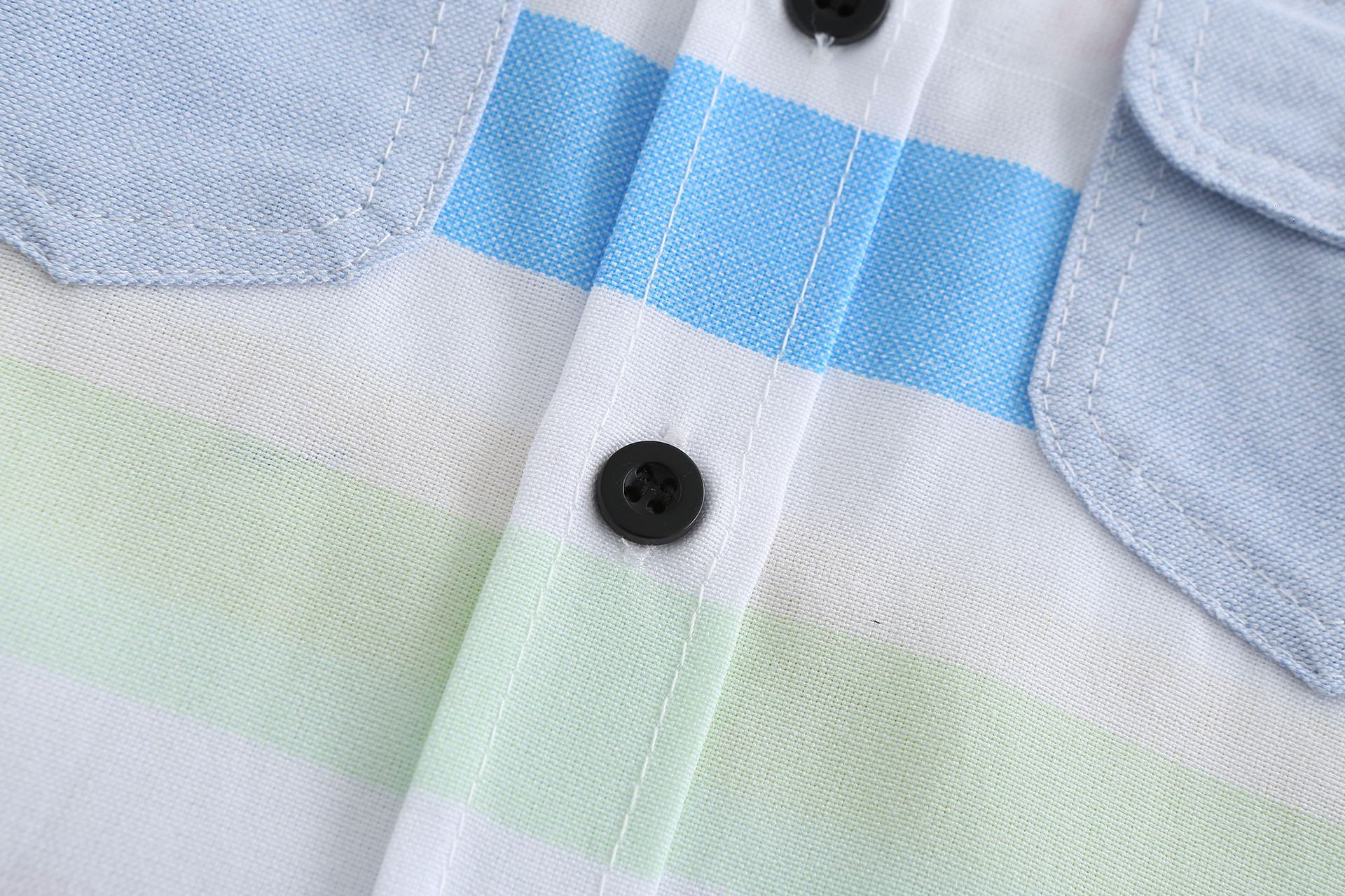 Custom Casual Boys Blue Denim Shirts Kids Cotton White Short Sleeve Button Striped Boys Shirts