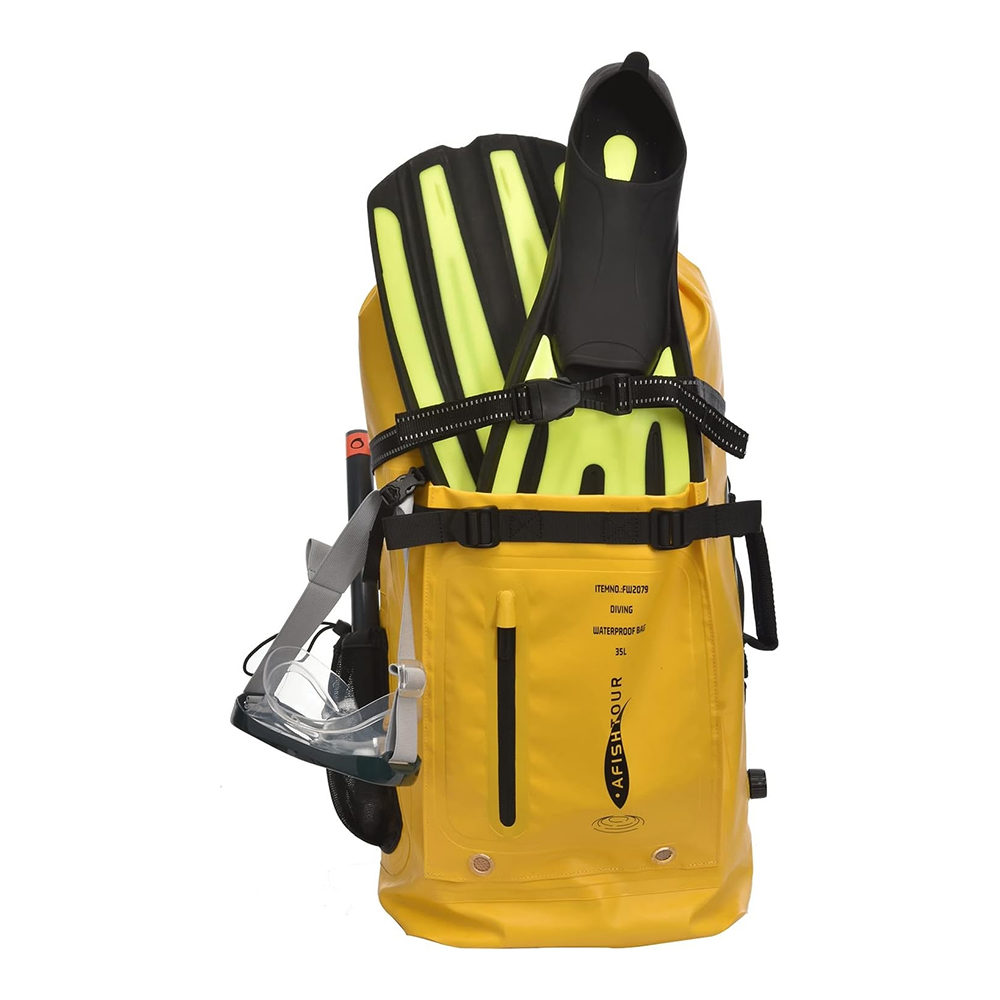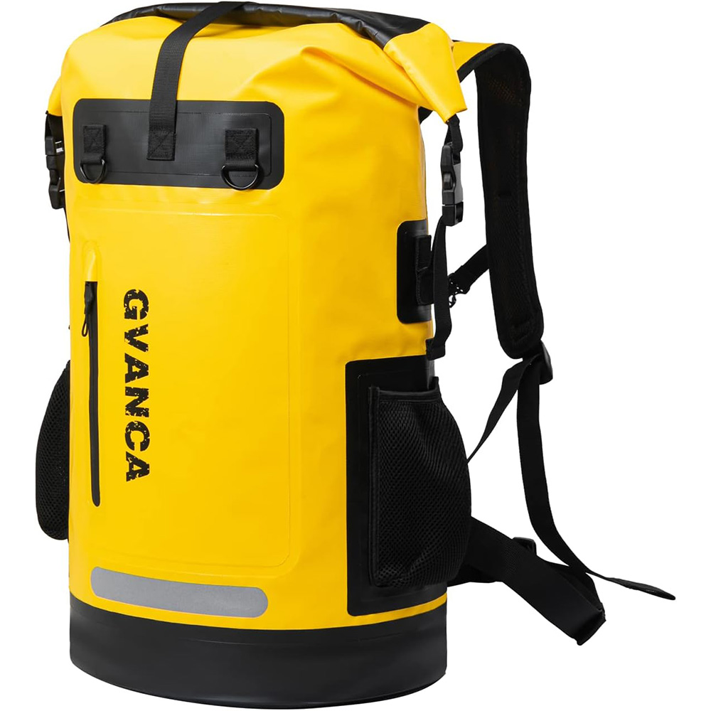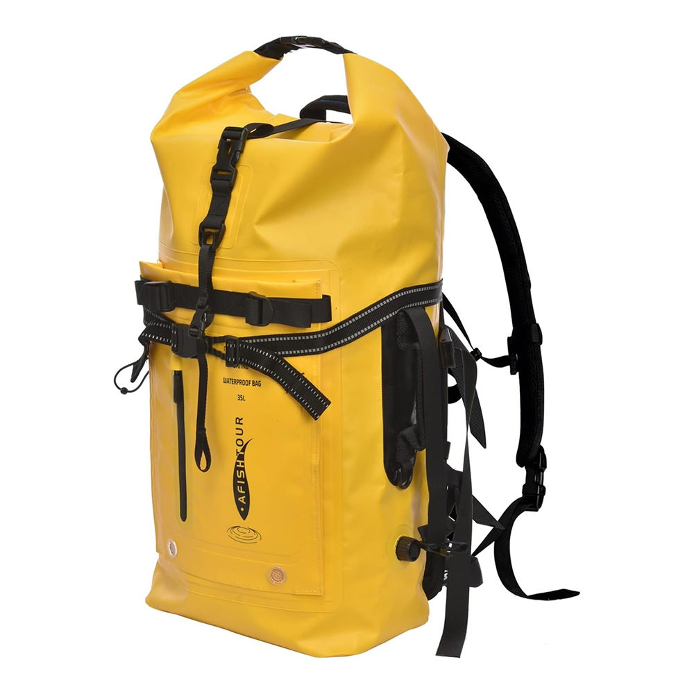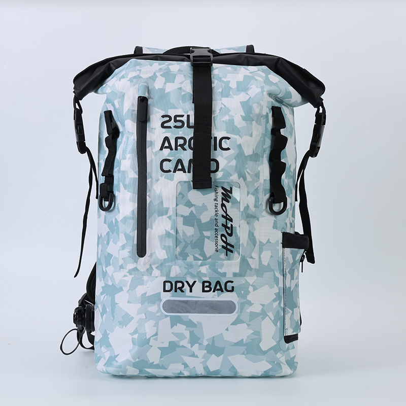 * 100% weatherproof, snow, sand, mud and dust High frequency welded 1680D TPU laminated ripstop oxford with roll down zipper system + 8 compression straps to create an airtight dry bag