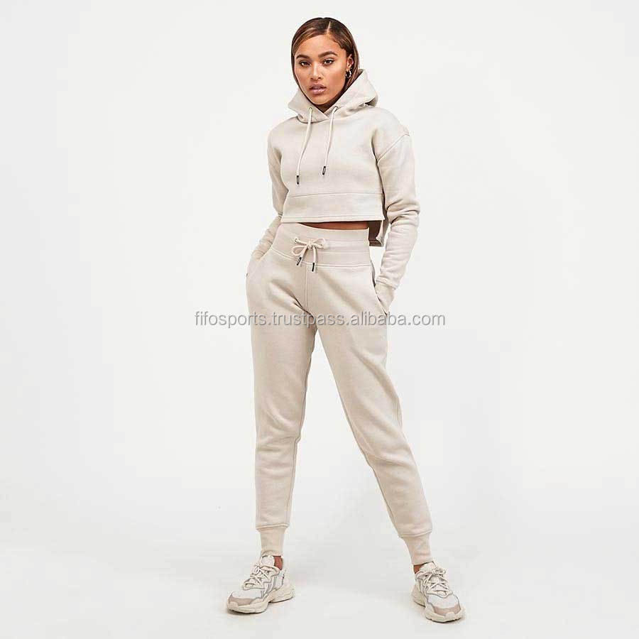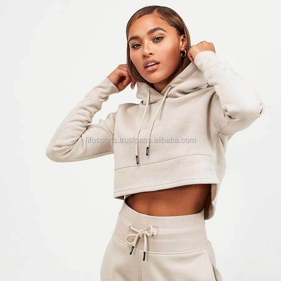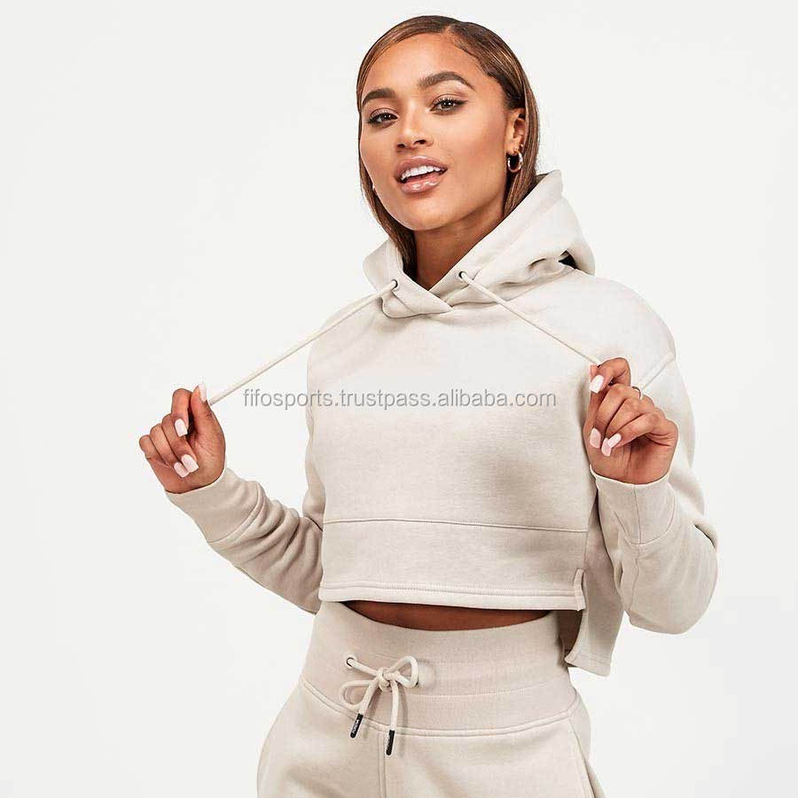 Custom Logo Women's Cropped Pullover Hoodie Women's Solid Color Long Sleeve Cropped Hoodie