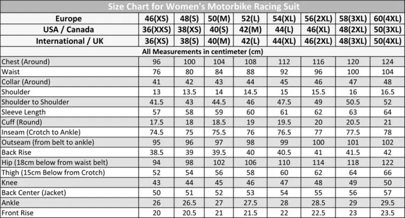 customized: > Schoeller-Keprotec® optional for stretch material. > Tailor-made sizing facility for men or women. > Desired Design is available in 1-piece or 2-piece sets. > Perforated leather panels. > Embroidered logo in any desired design. > Leather patches. > Ventilation zipper. > Comfort collar. |