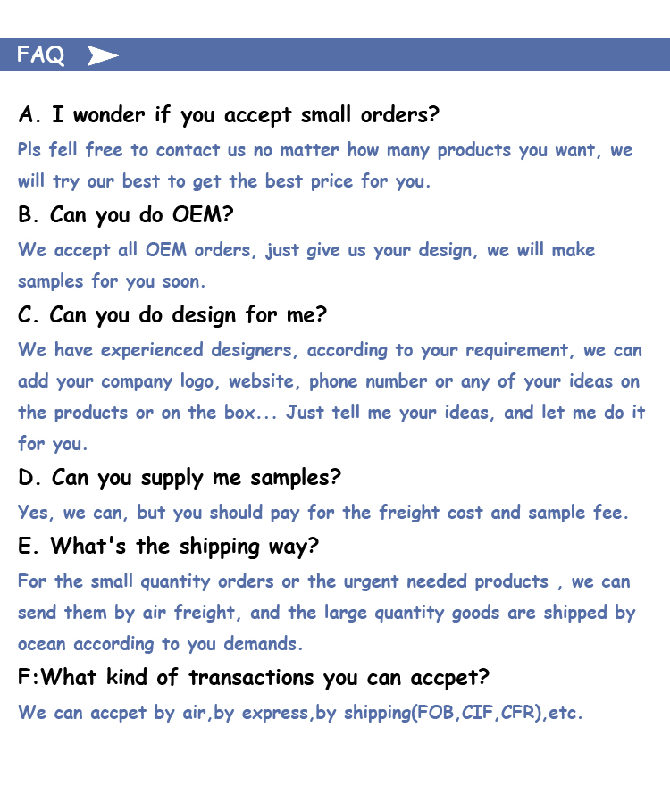 (1) L/C, T/T, D/P, D/A, PAYPAL, WESTERN UNION, MONEY GRAM |