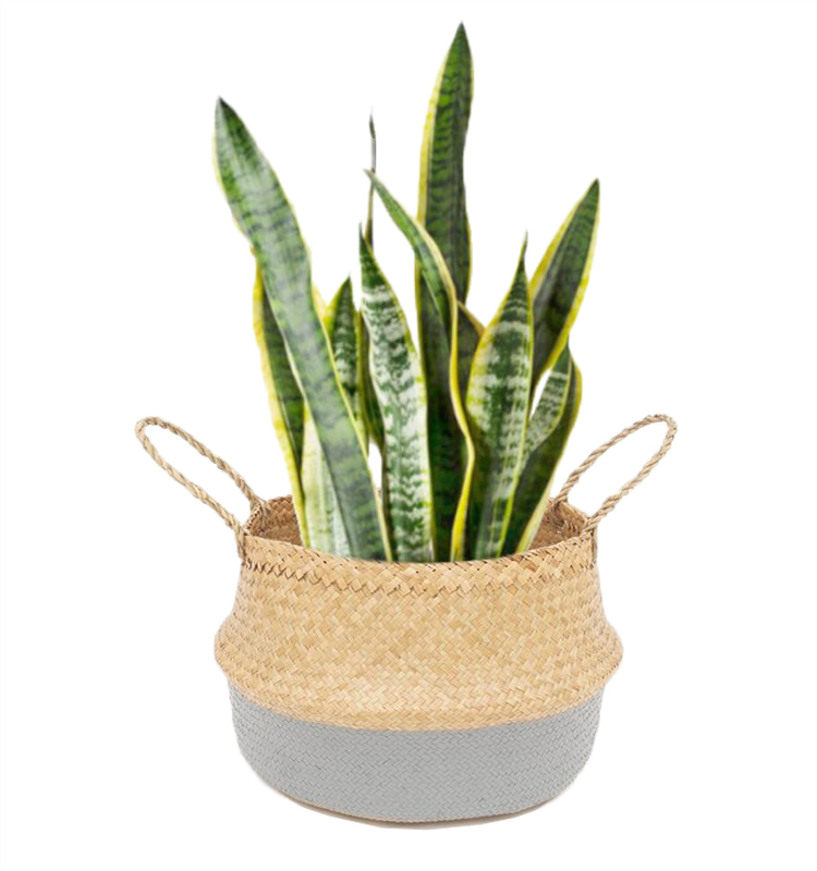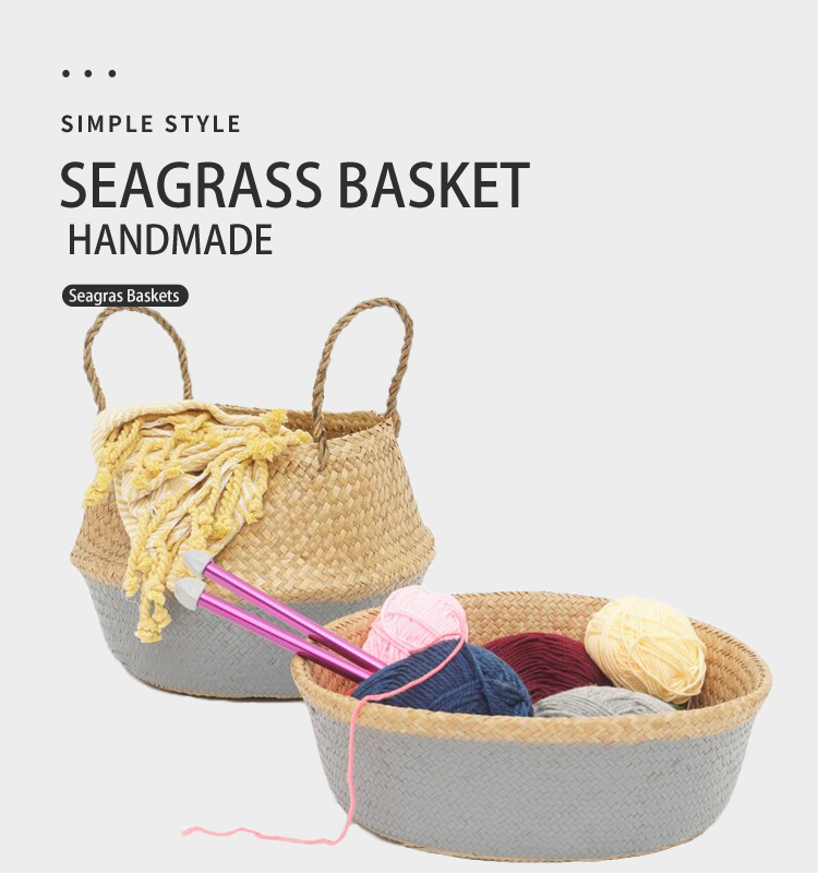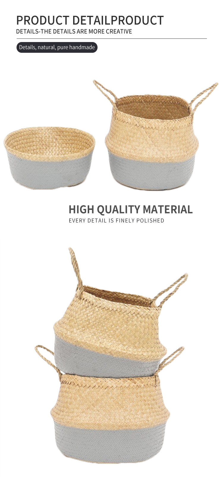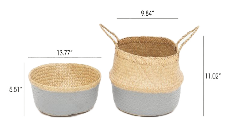 Custom Size Colorful Straw Basket Woven Seagrass Handmade Belly Storage Basket With Handles